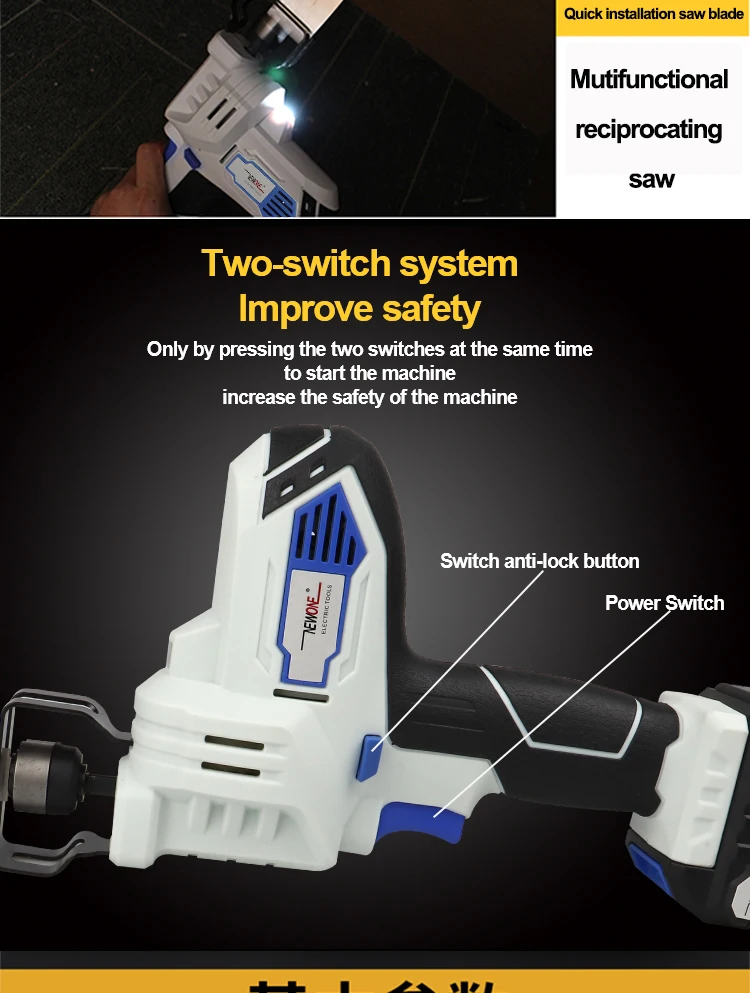 | Быстрой регулировки | Переключатель двойной регулировки скорости | Светодиодный прожектор заливающего света | Bold шестерни | Вперед разворот регулирования | Литиевая батарея большой емкости |