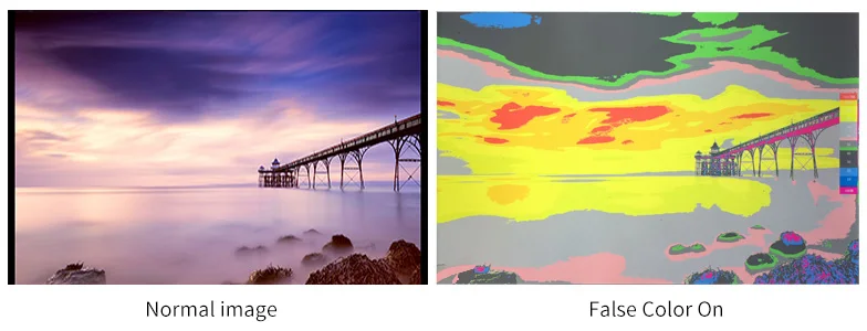 Фильтр False Color используется для помощи в настройке экспозиции камеры. При настройке диафрагмы камеры элементы изображения будут менять цвет в зависимости от значений яркости или яркости. Это позволяет добиться надлежащего воздействия без использования дорогостоящего, сложного внешнего испытательного оборудования.