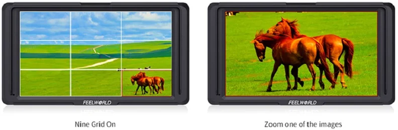 FEELWORLD F5 - это очень компактный 5-дюймовый монитор с соотношением сторон 16: 9. Панель Full HD 1920 x 1080 на F5 удивительно четкая, с разрешением 440 пикселей на дюйм. ЖК-дисплей с высоким разрешением показывает яркие, четкие изображения - создание Это идеальный монитор для взыскательного пользователя DSLR, он также имеет подсветку 450 кд / м2 и высокий коэффициент контрастности 1000: 1, что позволяет отображать на экране более живое и более точное изображение, которое видит датчик камеры.