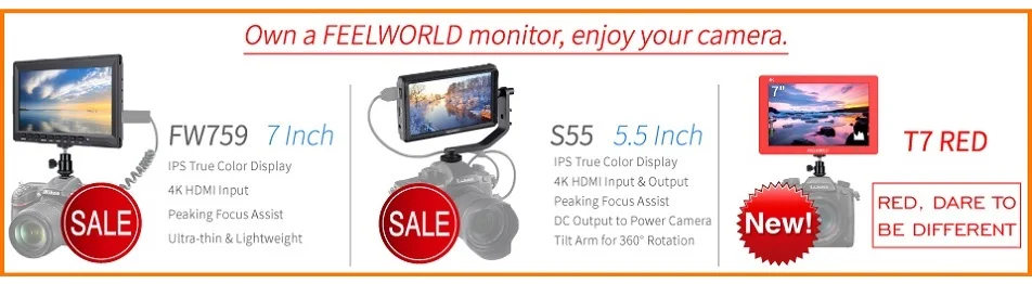 Монитор FEELWORLD F5 совместим с различными камерами и видеокамерами, такими как SONY, Nikon, Canon, Panasonic, FUJIFILM, Leica, OLYMPUS, PENTAX и т. Д. Если камера имеет выход HDMI, ее можно подключить к монитору с помощью кабеля HDMI. ,