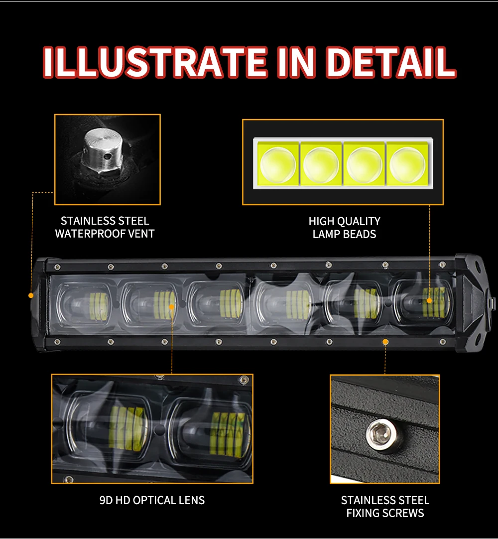 WINING 120 Вт 27 дюймов 9D светодиодный рабочий светильник Однорядный светодиодный бар для Wrangler JK 4x4 внедорожника 9D рабочий светильник 4WD 4x4 грузовик
