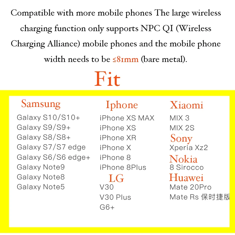 QI Беспроводное быстрое автомобильное зарядное устройство-стандарт беспроводной зарядки WPC Qi, технология быстрой зарядки 10 Вт, будет заряжать ваш телефон стабильно и быстро.