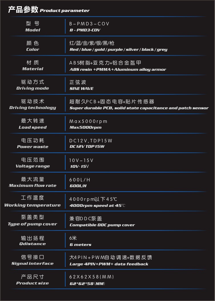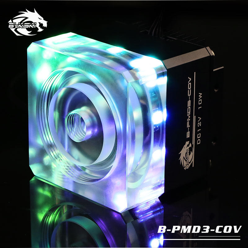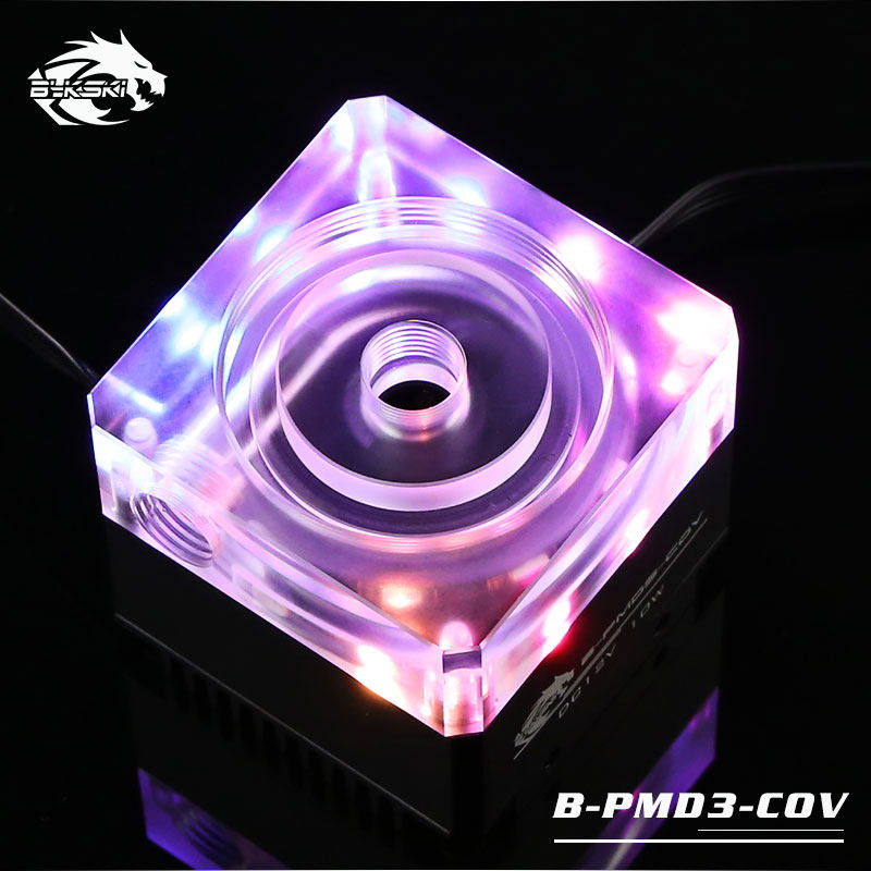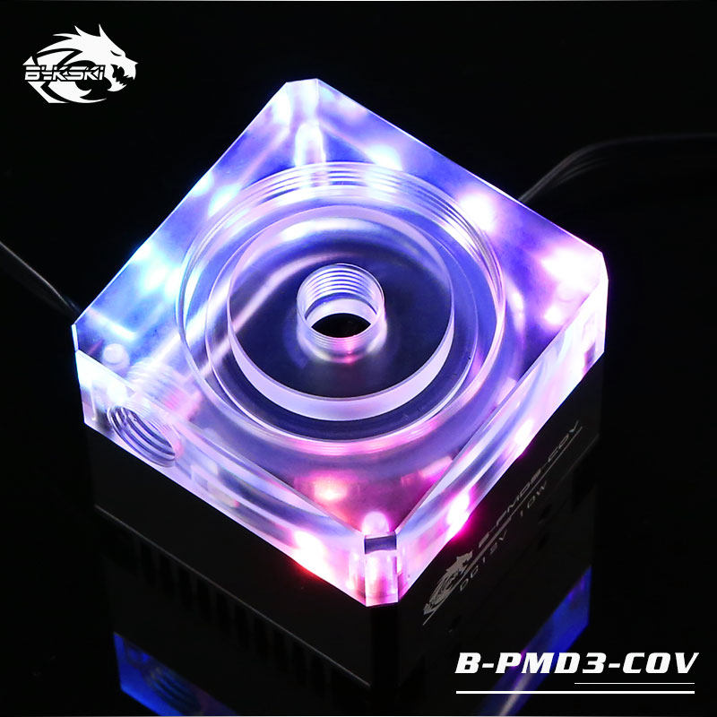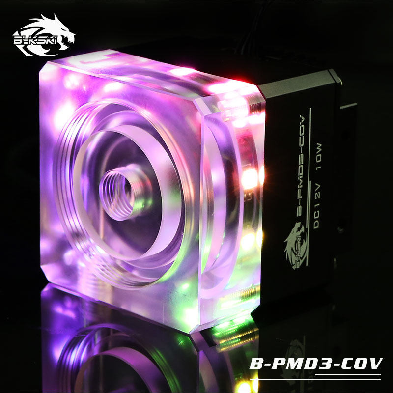 Этот насос может комбинироваться с резервуаром диаметром BYKSKI 50 ммДва использования:1. Использование в качестве насоса DDC без света.2. Использование RBW освещения и подключение его с AURA SYNC 3PIN GND Header к вашей материнской плате.