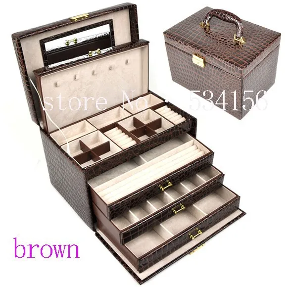Роскошная большая 4-5 слойная Коричневая Кожаная Шкатулка для ювелирных изделий, серьги, коробка для демонстрации ювелирных изделий, свадебные подарки, Подарочная коробка, витрина, шкатулка