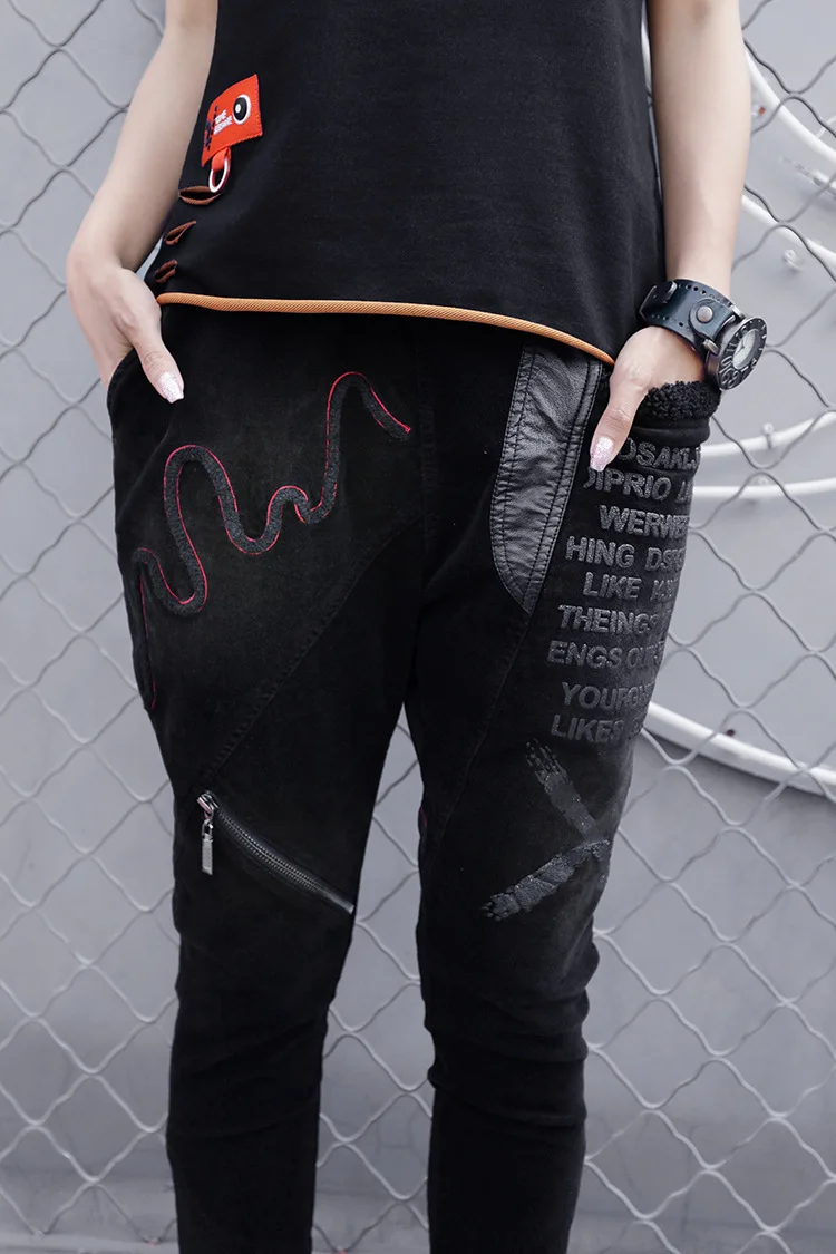 Роскошные шаровары в стиле панк кожаный Пэчворк с 3d принтом