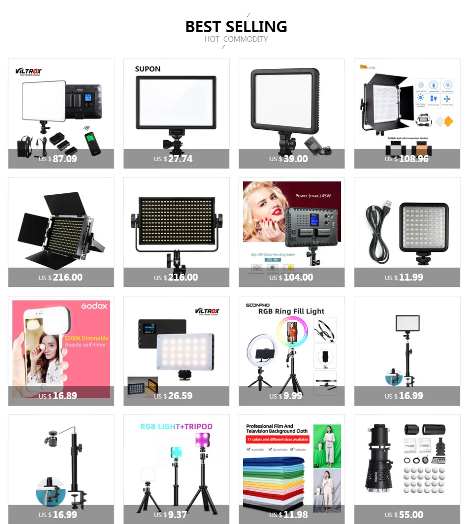 - Viltrox VL-200-двухцветный светодиодный светильник (диапазон температур: 3300k-5600k) с высококачественными лампами, которые являются энергосберегающими, экологичными и долговечными.