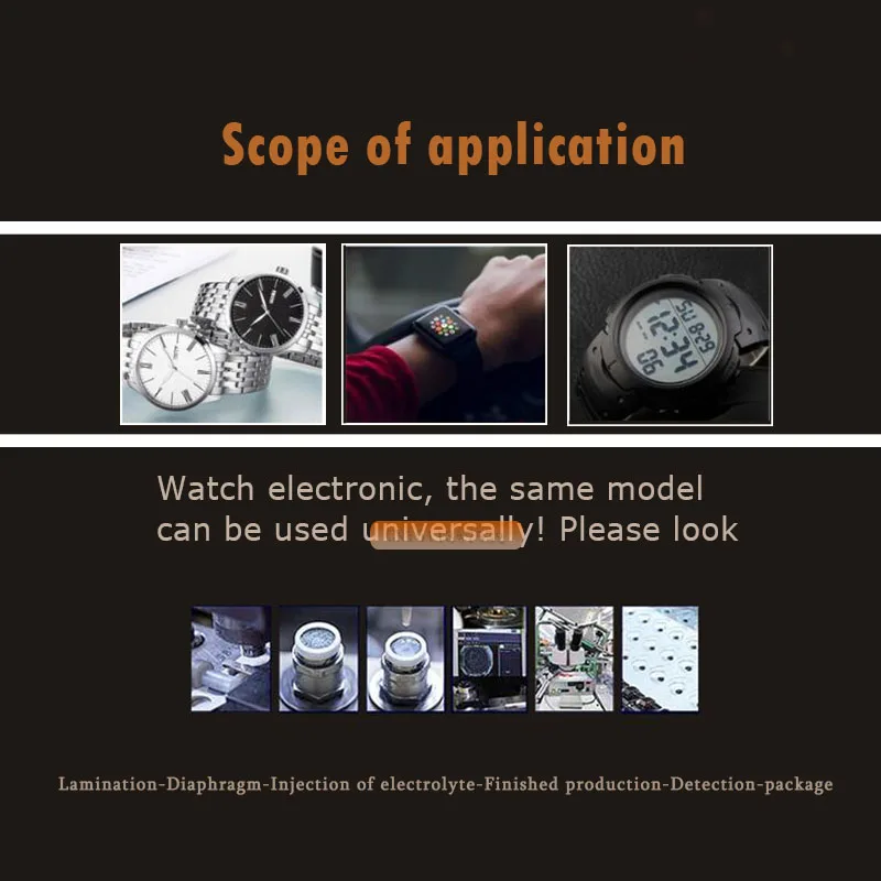 Применение: часы, камеры, калькуляторы, Автомобильная охранная сигнализация, автомобильные пульты без ключа, органайзеры, глюкометры, компьютерное оборудование (запасная батарея памяти), игрушки, коммуникационное оборудование, пакет данных для видеокамер, И других устройств, которые требуют этого размера аккумулятора.