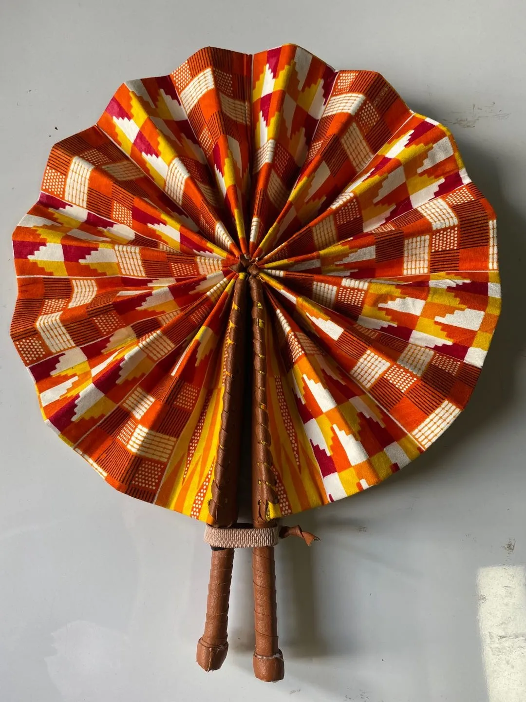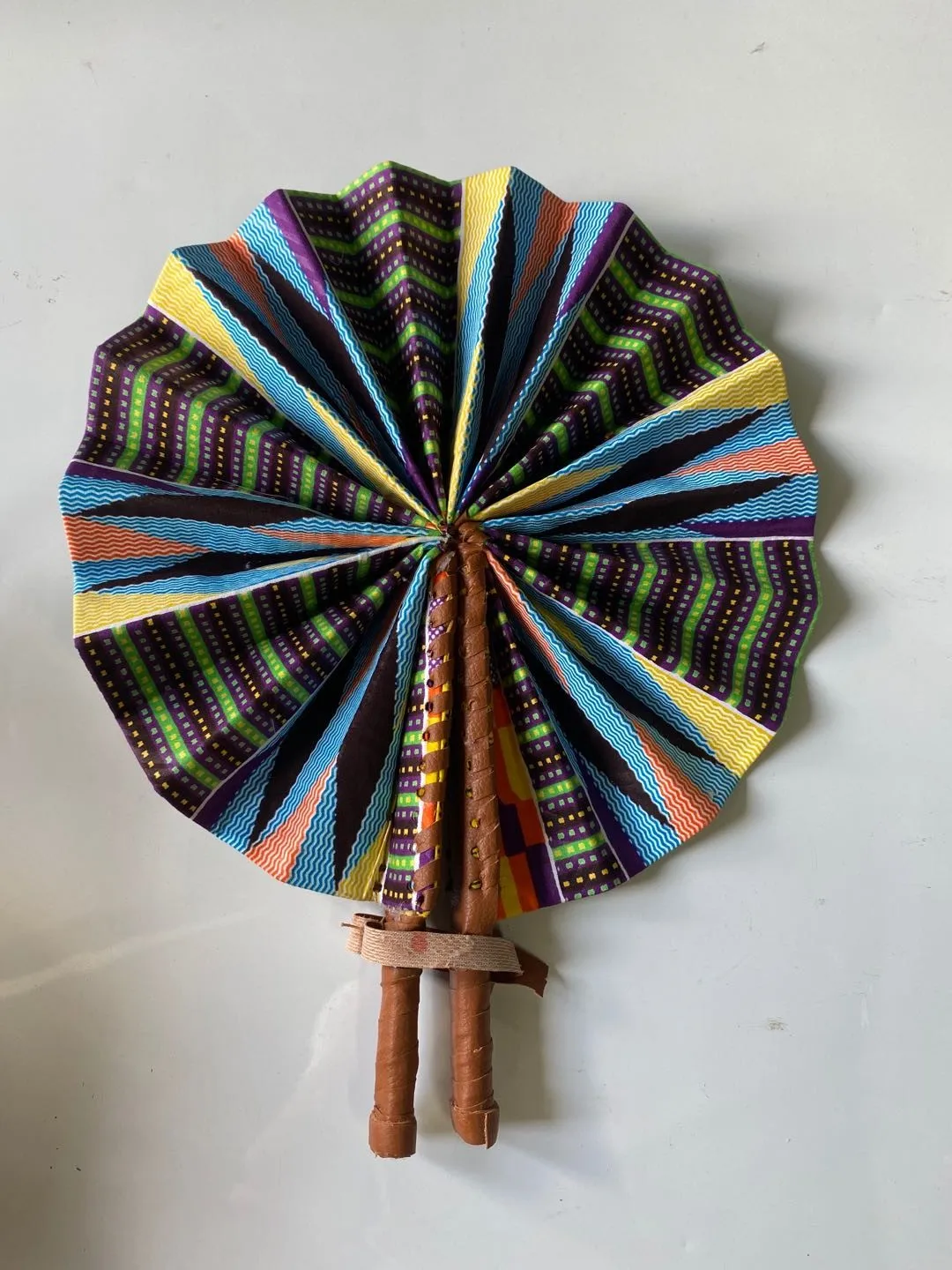 Африканский восковой принт ткани с кожаным складным веером узор Искусство