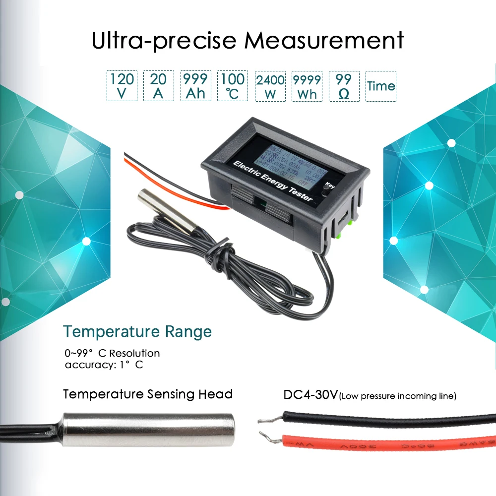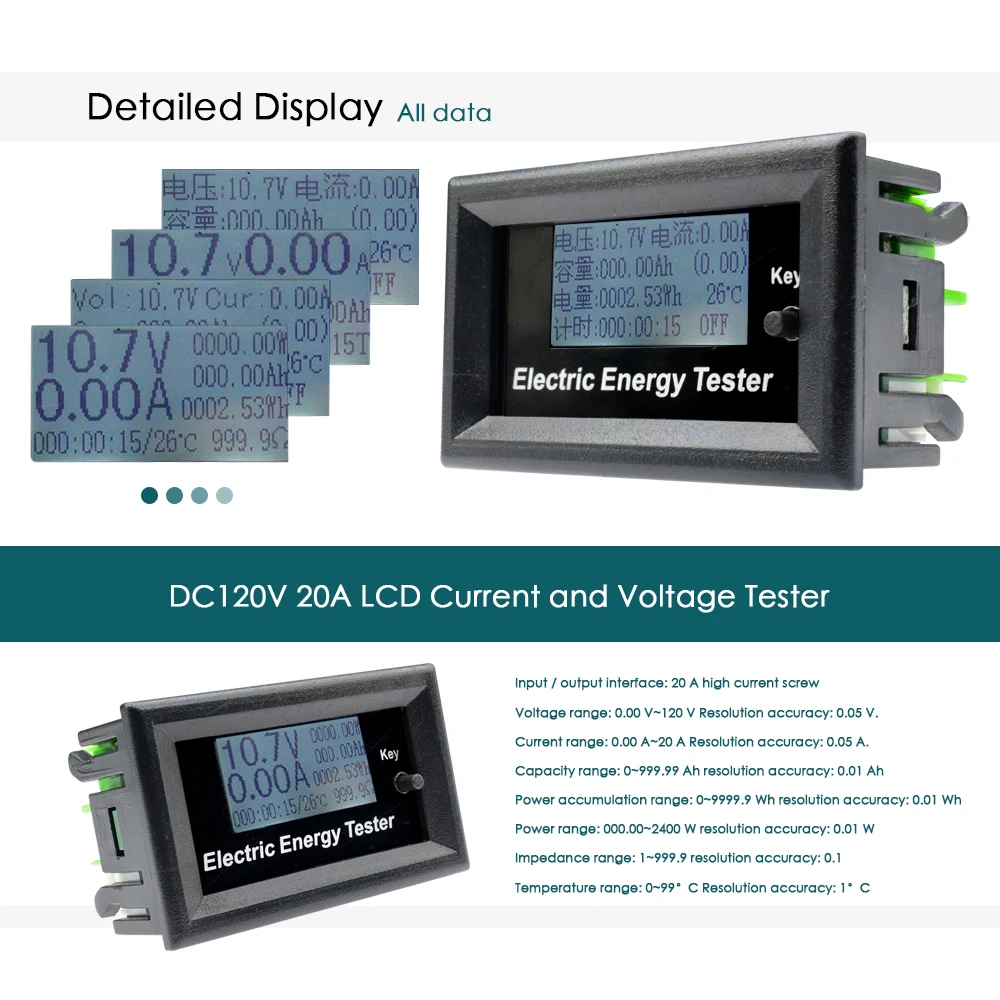 Ёмкость диапазон: 0 ~ 999,99 Ah точность разрешения: 0,01 Ач