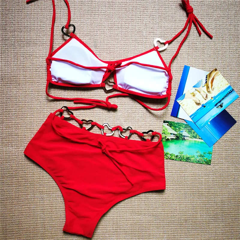 Купальные костюмы с высокой талией леопардовый/белый/красный бикини пуш ап