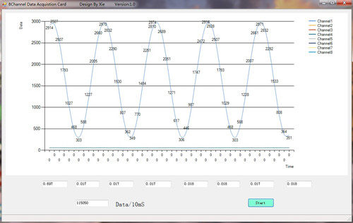 Высокоскоростной USB2.0 8-канальная система сбора и обработки данных карты NM_8CH_ADC-17001 Есть скидки на оптовые покупки, пожалуйста, свяжитесь с нами! Во-первых, введение продукта В собственной разработки NM_8CH_ADC-17001 система сбора и обработки данных карты-это хорошо продуманная и материалы-ориентированной; Это зависит от 8-ми канальный 16-bit 200Ksps аналогового сигнала приобретения. Он может использоваться в системах сбора данных, анализа и обработки данных в различных областях, таких как лаборатории, центры тестирования качества продукции и университеты. Может также использоваться в промышленных системах мониторинга процессов и низкочастотных осциллографов; NM_8CH_ADC-17001 использует высокоскоростной интерфейс шины USB2.0, который может заменить карту сбора данных предыдущего интерфейса PCI. Может работать в Windows XP/Vista/WIN7/WIN8/WIN8.1 32/64 и других общих операционных системах; NM_8CH_ADC-17001 предоставляет программы VC, LabVIEW source, которые могут быть использованы для написания собственных приложений. И карта захвата предоставляет данные в виде пакетов данных (данные заголовка данных 1 данные 2 данные 3 Данные 4 данные 5 данные 6 Данные 7 данные 8 данные хвоста данных, данные немного в endian mode), что очень удобно для разработки программы. Во-вторых, показатели эффективности 2,1, производительность шины USB ● Высокоскоростная связь USB2.0; 2,2, вход аналогового сигнала ● Аналоговый входной канал: 8 каналов ● Диапазон аналогового ввода: ± 5 В или +-10 В (доставка по умолчанию +-5 В) ● Аналоговое Входное сопротивление: 10K ● Разрешение: 16 бит ● Частота дискретизации: 200 кГц, различные скорости могут быть установлены переключателем циферблата: 1/2/4/8/16/32/64; В-третьих, проверьте изображение 1 протестированный источник сигнала: