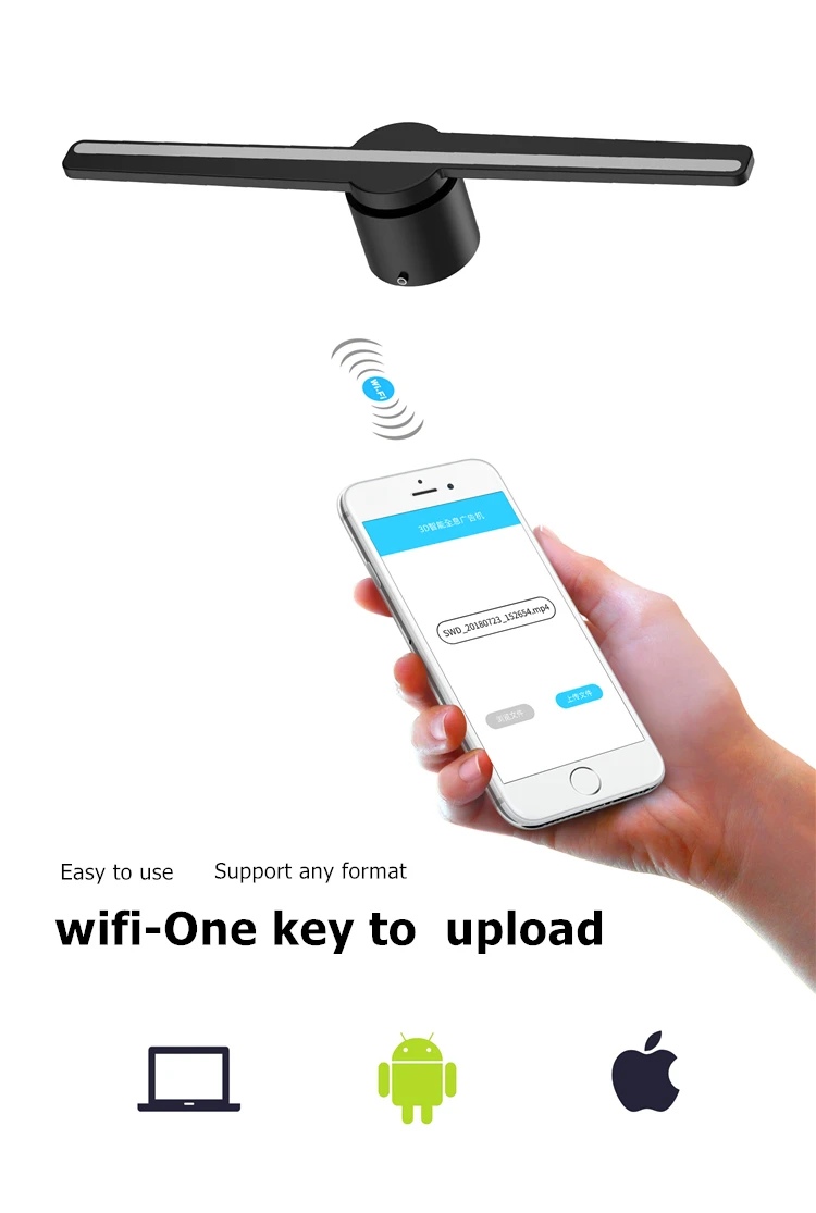 Передача Wi-Fi (программное обеспечение ПК и Приложение IOS и Android), переход к. Бин файл для загрузки в 3D Голограмма вентилятора