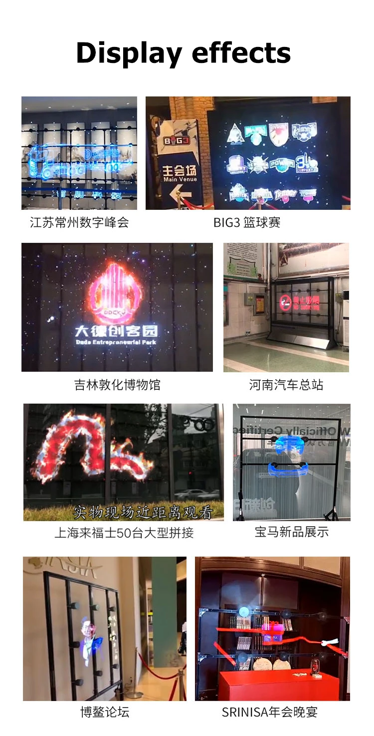 Когда он работает, он выглядит как фото Подвески без рамки в воздухе, чтобы достичь голого 3D эффекта дисплея.