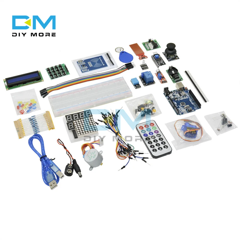 Описание: RFID Обучающий набор пришел в мастер-люкс обновления, обновления размещаются в основном в: 1,1602 I2C 1602 заменяет экран для более удобного управления, 2. Новый RFID модуль и брелки RFID и белая бумага, 3. Добавлена форма DS1302 часов, 4. Новый модуль обнаружения звука, 5. Новый модуль температуры и влажности, 6. Новый модуль обнаружения уровня воды, 7. Добавлен модуль клавиатуры 4*4 8. Новая форма матрицы 8*8 Посылка включает в себя: 1 х один совет 1 х USB кабель 1 х кабель 1 х измельчитель 5 X светодиодный светильник 1 посылка резистора 1 X мужская линия dupond 1 X потенциометр 1 зуммер 1X74HC595 1 X инфракрасный приемник 1 X LM35 1 X датчик пламени 1 х шариковый переключатель Фоторезистор-1 шт. 1 Кнопка Ключа 1 пульт дистанционного управления 1 X изображение трубки 1X8*8 матричный модуль 1 X-digit дисплей трубки Плата драйвера шагового двигателя-1 шт. 1 X двигатель шаг за шагом 1 x9g слуга 1 ЖК-дисплей IIC 1602 Модуль джойстика-1 шт. 1 X Температура модуля 1 х испытательный модуль воды Модуль RFID-1 шт. 1 х брелок RFID 1 х RFID белая бумага Звуковой модуль-1 шт. 1 X релейный модуль 1 X модуль часов 1X4*4 клавиатура 1 X модуль RGB в 3 цветах 1X9 V батарея съемки