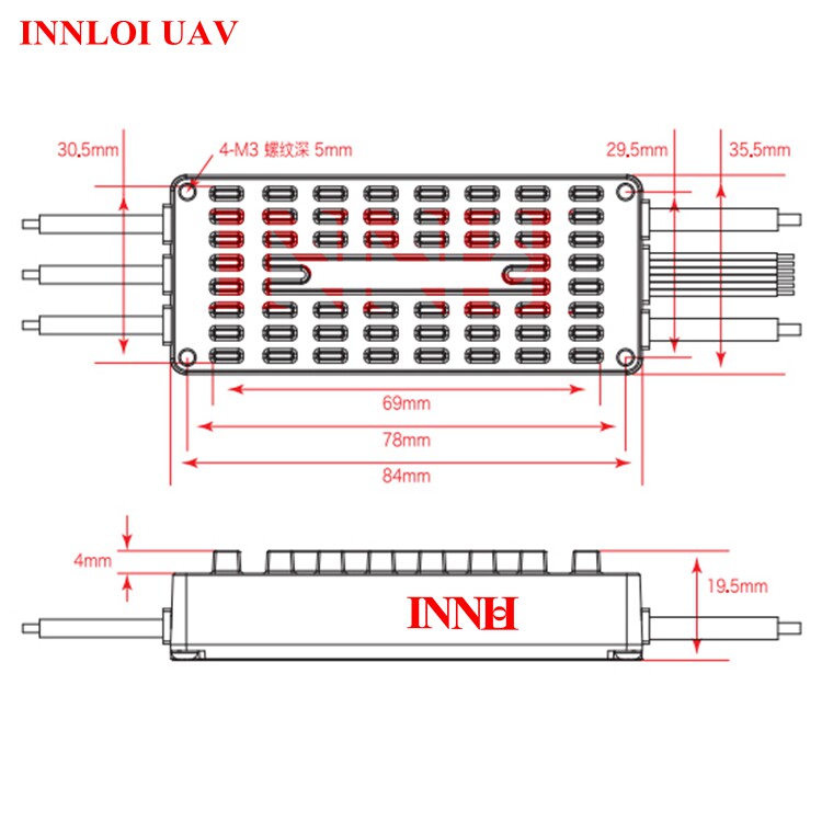 Компактный и легкий дизайн делает ESC более применимым к сверхмощным дронам (с более чем 4 роторами), запасными резьбовыми отверстиями и слотами на радиатореКорпус упрощает и диверсифицирует установку.