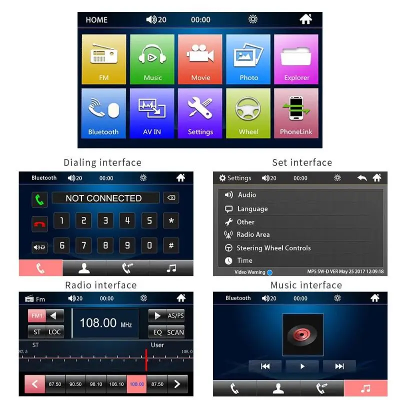 1 x MP5 плеер2 x задние кабели 1 x пульт дистанционного управления 1 x Руководство пользователя