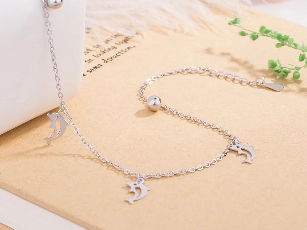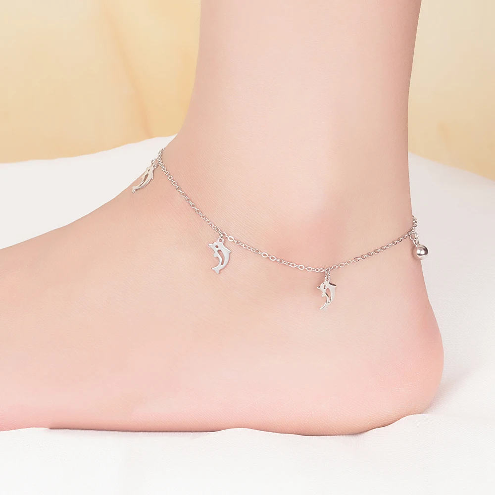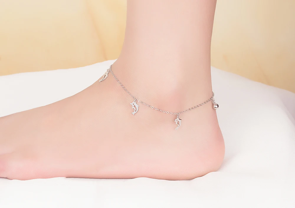 Женский ножной браслет SLJEY желтое золото с кубическим цирконием из стерлингового
