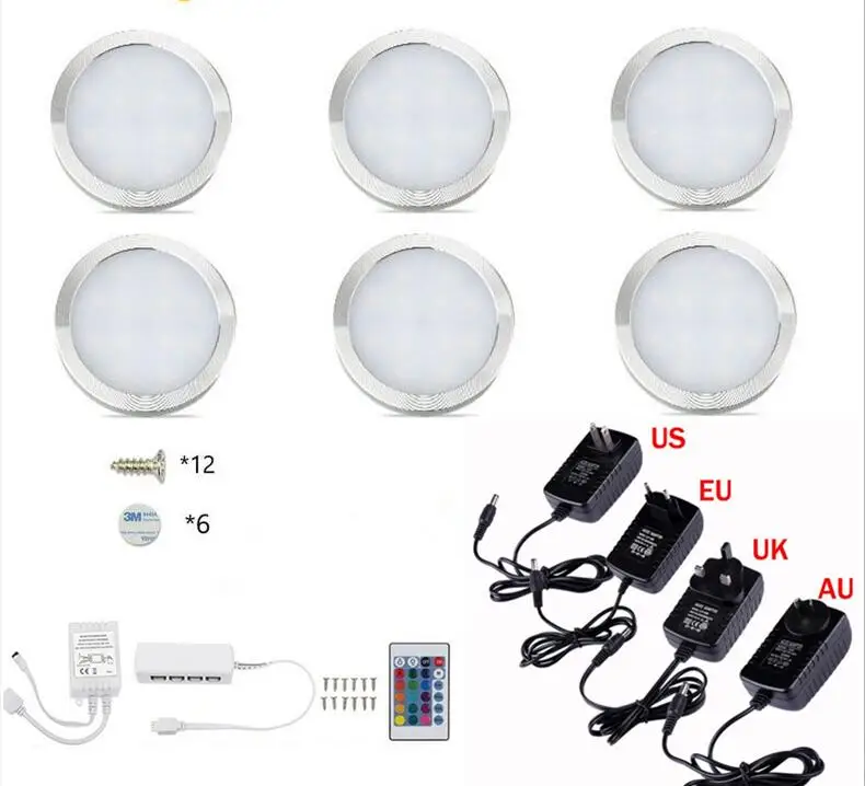 Мульти-Функция с меняющимися RGB цветами светодиодная подсветка под шкаф с 16-ключ беспроводной RF дистанционный пульт с регулируемой яркостью шайбовые светильники комплект для кухонной мебели настроение освещения.