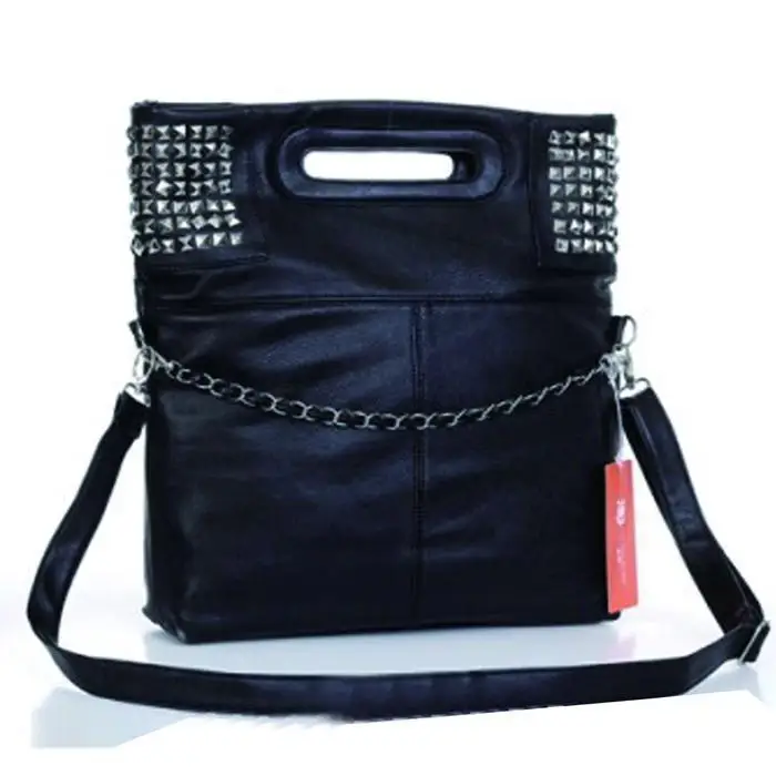 Клатч на молнии мягкая сумка ремне с заклепками регулируемая плечо одноцветная