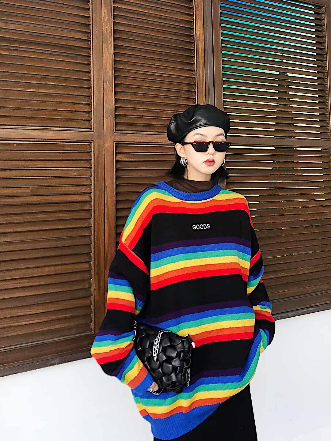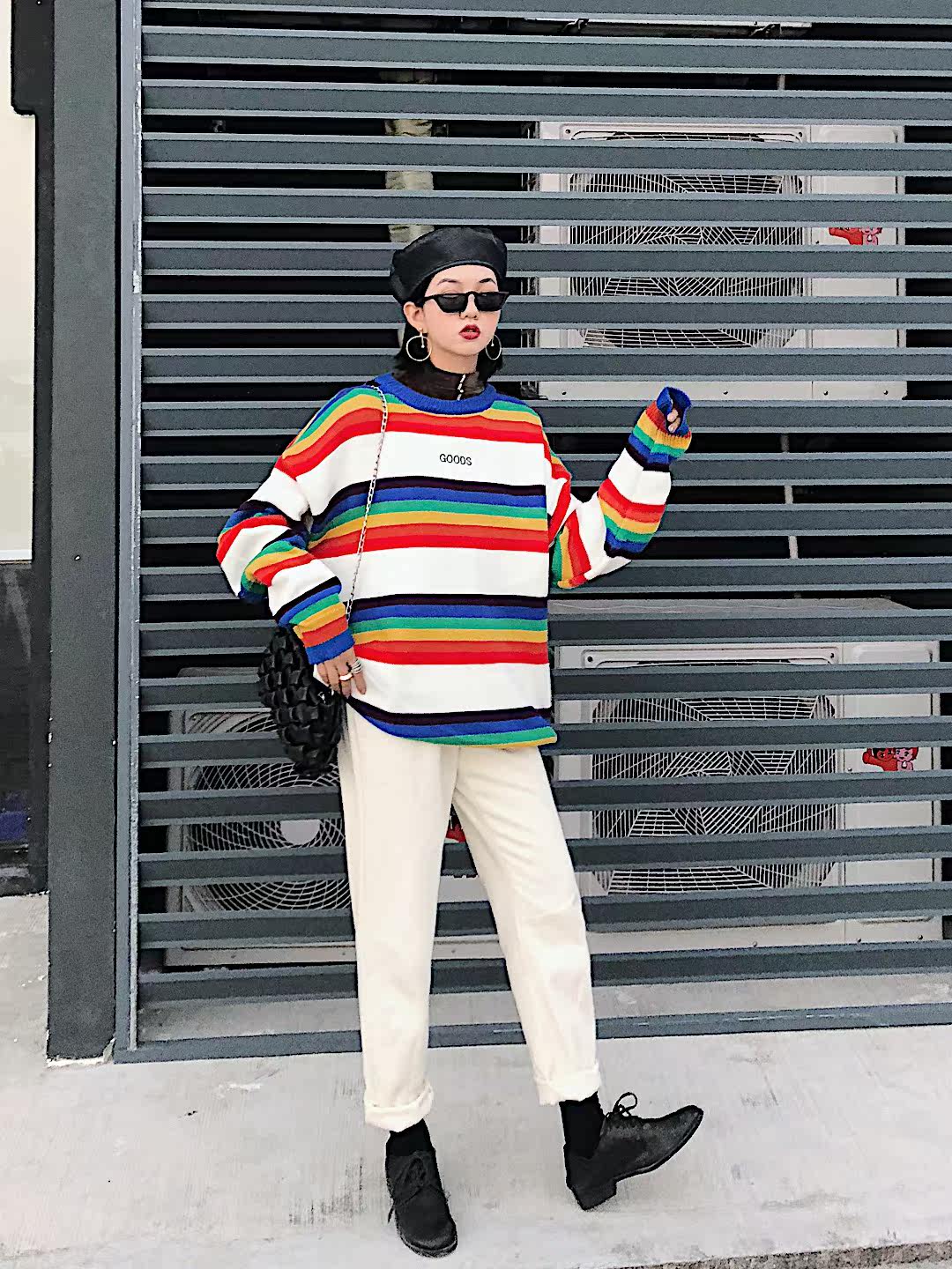 款名: 彩虹条纹针织衫品牌: jasummer 颜色: 黑色白色面料: 毛线针织 | ||||||||||||||||||||||||||||||||||||||||||||||||||||||||||||||||||||