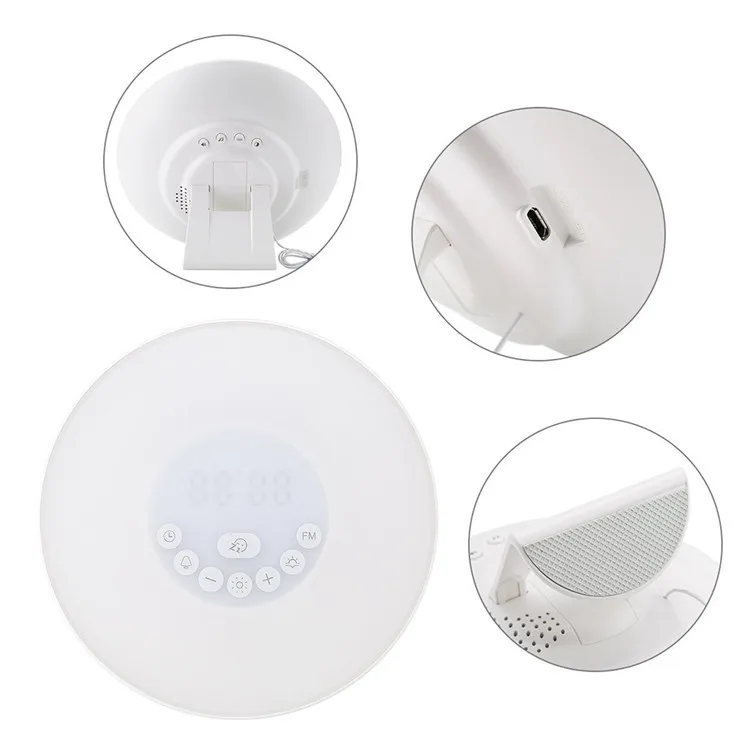 Будильник с имитацией восхода солнца: мягко Просыпайтесь с естественным светильник и естественными звуками и подарите вам расслабленное настроение утром. Светильник для сна с имитацией заката: светильник будет постепенно затемняться, в конце концов выключите светильник во время сна. 6 естественных звуков и fm-радио: включает в себя 6 видов естественных звуков, таких как птицы, Волны океана и так далее, 7-й звук-fm-радио. Несколько светильник режимы: 6 видов цветов (зеленый, красный, синий, желтый, фиолетовый, оранжевый, индиго) и 10 уровней теплый белый светильник являются опциональными. Функция повтора: звук пробуждения будет воспроизводиться снова через 5 минут, давая вам дополнительные 5 минут сна. Чувствительные сенсорные клавиши: очень легко установить время, будильник, светильник, fm-радио и другие функции.