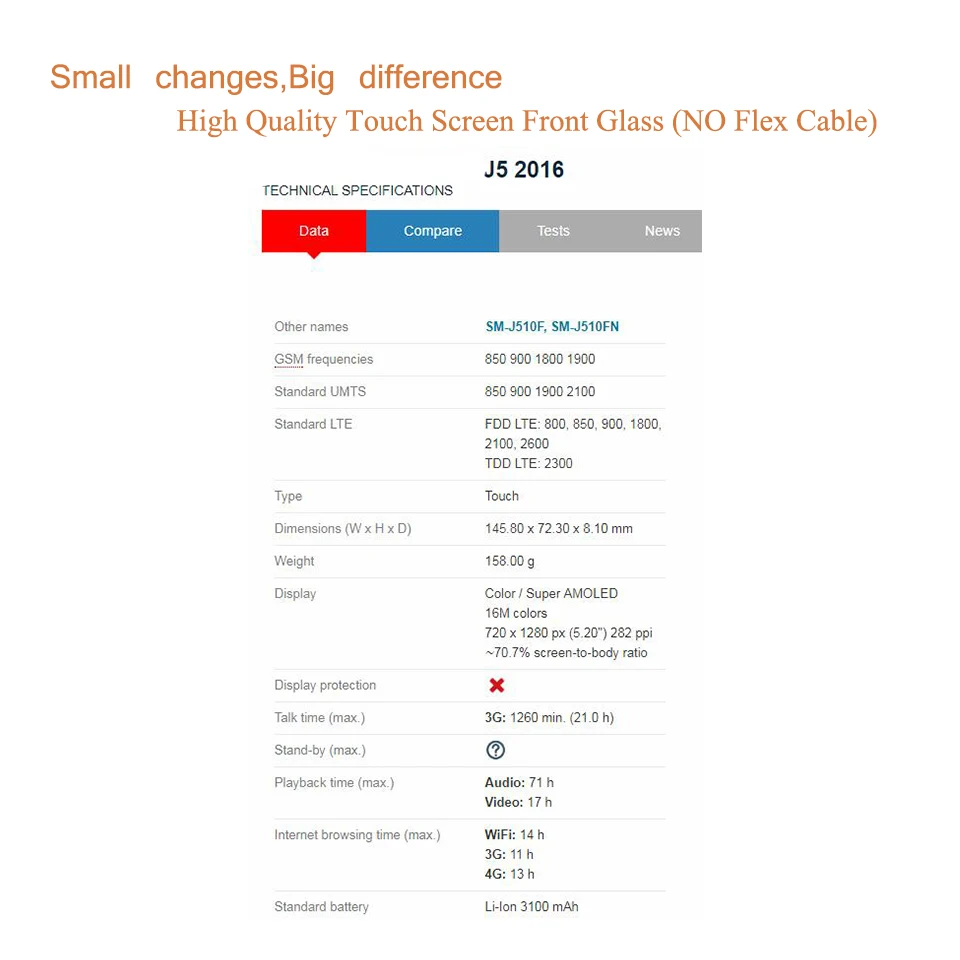 10 шт./лот для Samsung Galaxy J5 2016 J510 J510FN J510F J510G J510Y J510M SM-J500F сенсорный экран передняя стеклянная панель сенсорный жк-экран внешний объектив 5,2 "черный белый золотой запасные запчасти