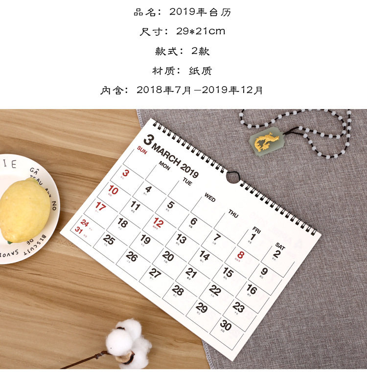 | Посылка список | 1 шт. календарь (от 2018,7 до 2019,12) |