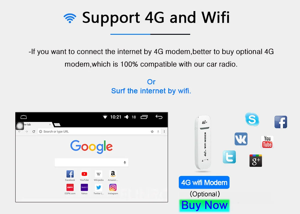 Поддержка сети 3G/4G: поддержка CDMA сим-карта, внешний автомобильный слот, если ваш регион не поддерживает сигнал CDMA, нужно купить 4G модем, если вы хотите купить его, пожалуйста, свяжитесь с нами