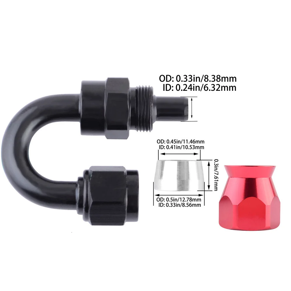 SPEEDWOW черный-красный AN6 180 градусов маслоохладитель фитинг адаптер масло топливо поворотный Hoes Конец подходит для ПТФЭ Масляный шланг алюминий
