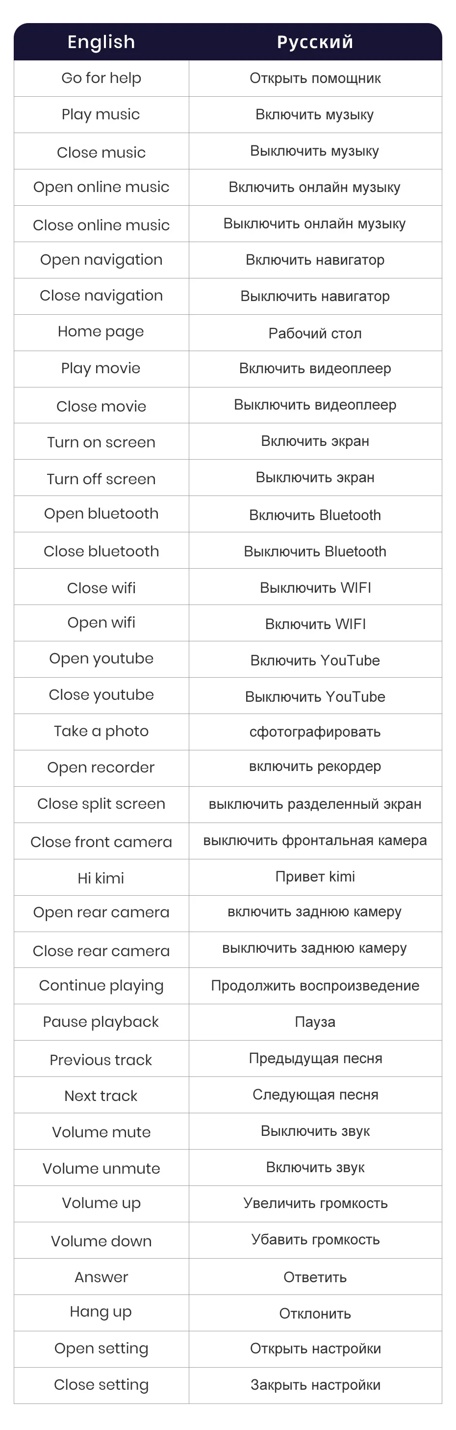 Поддержка голосовой команды на английском, русском и вьетнамском языках