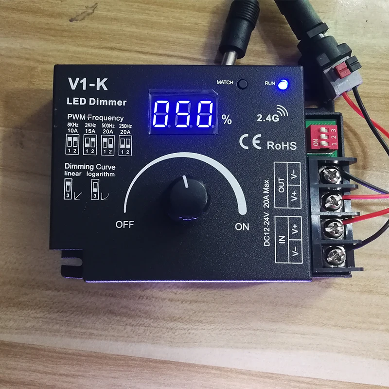 Светодиодный диммер 12V-24V Вход 20A большой Мощность Выход ШИМ Комплект частоты ручка Поворотная одна полоса тусклый цифровая Дисплей вкл/выкл переключатель