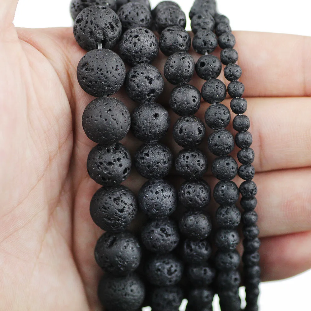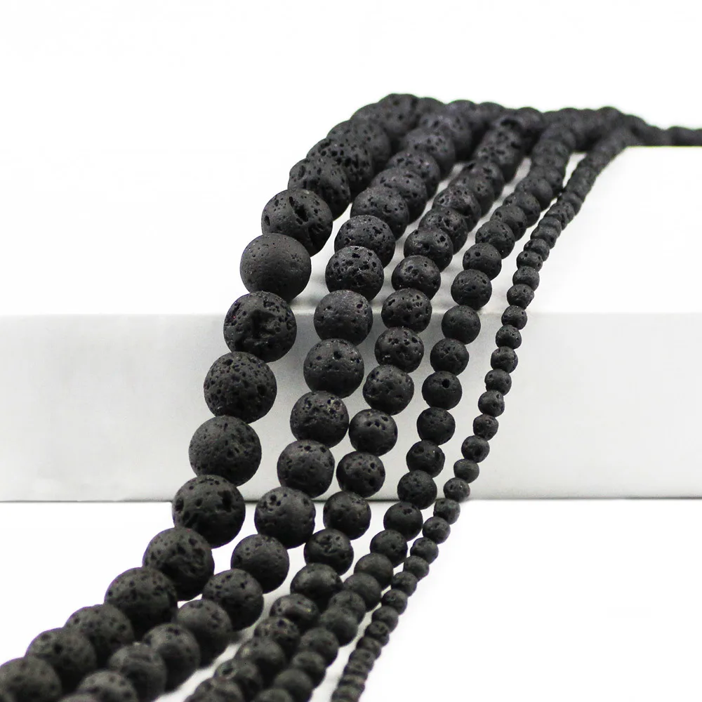 Из натуральных камней черного Лава бусины 4/6/8/10/12 мм с магмой из вулканической породы свободные бусины для самостоятельного изготовления ювелирных изделий браслет аксессуары