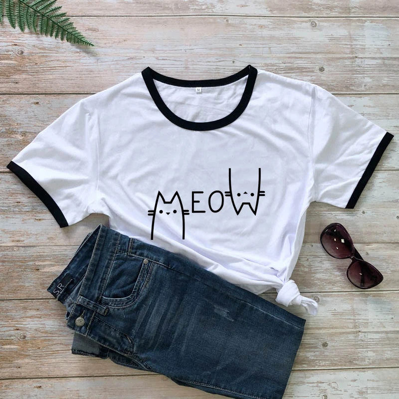 Футболка с изображением милого котенка забавная женская футболка животного топ