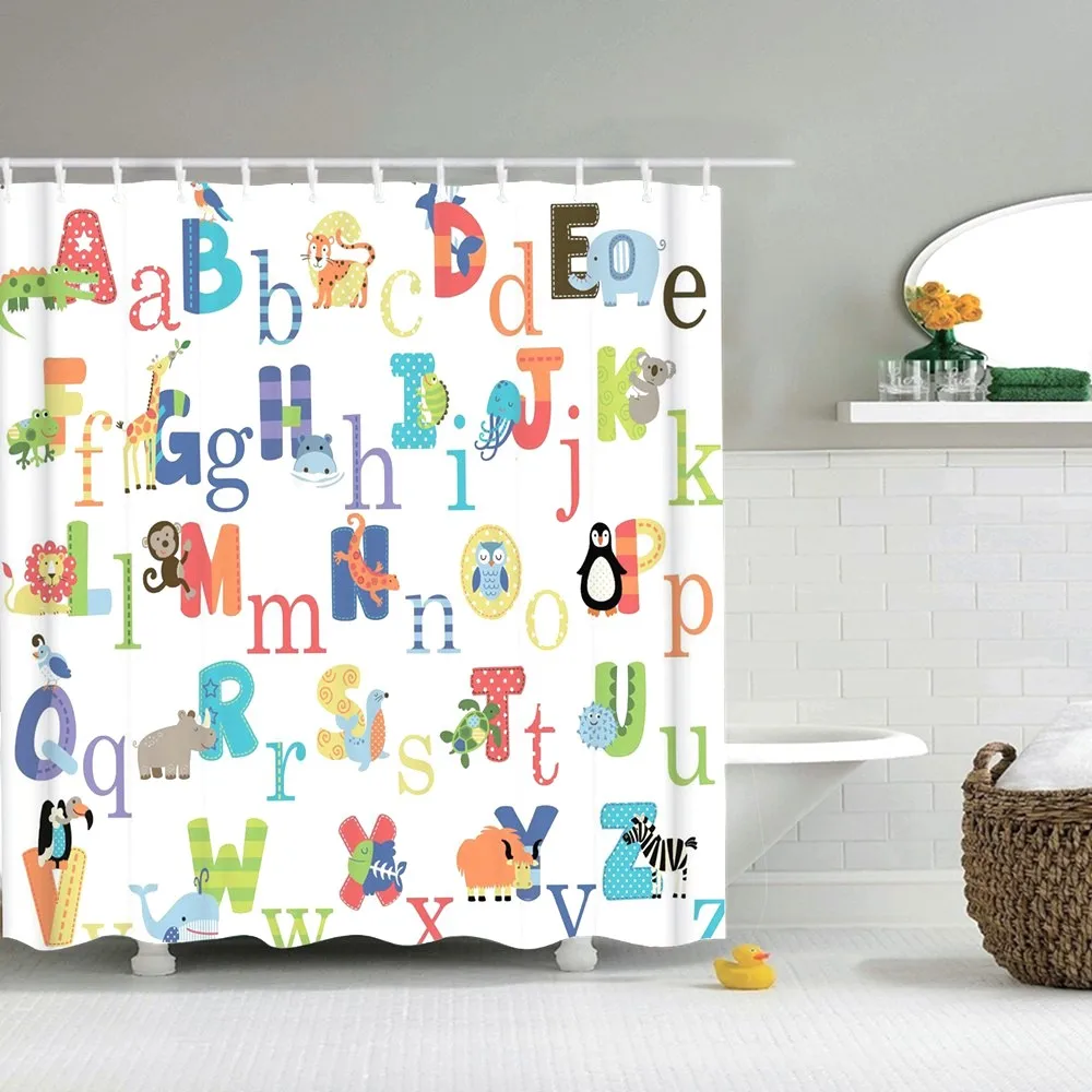Dafield детская занавеска для душа, набор, художественный ABC алфавит, водонепроницаемая ткань, полиэстер, ванная комната, занавеска для душа для детей