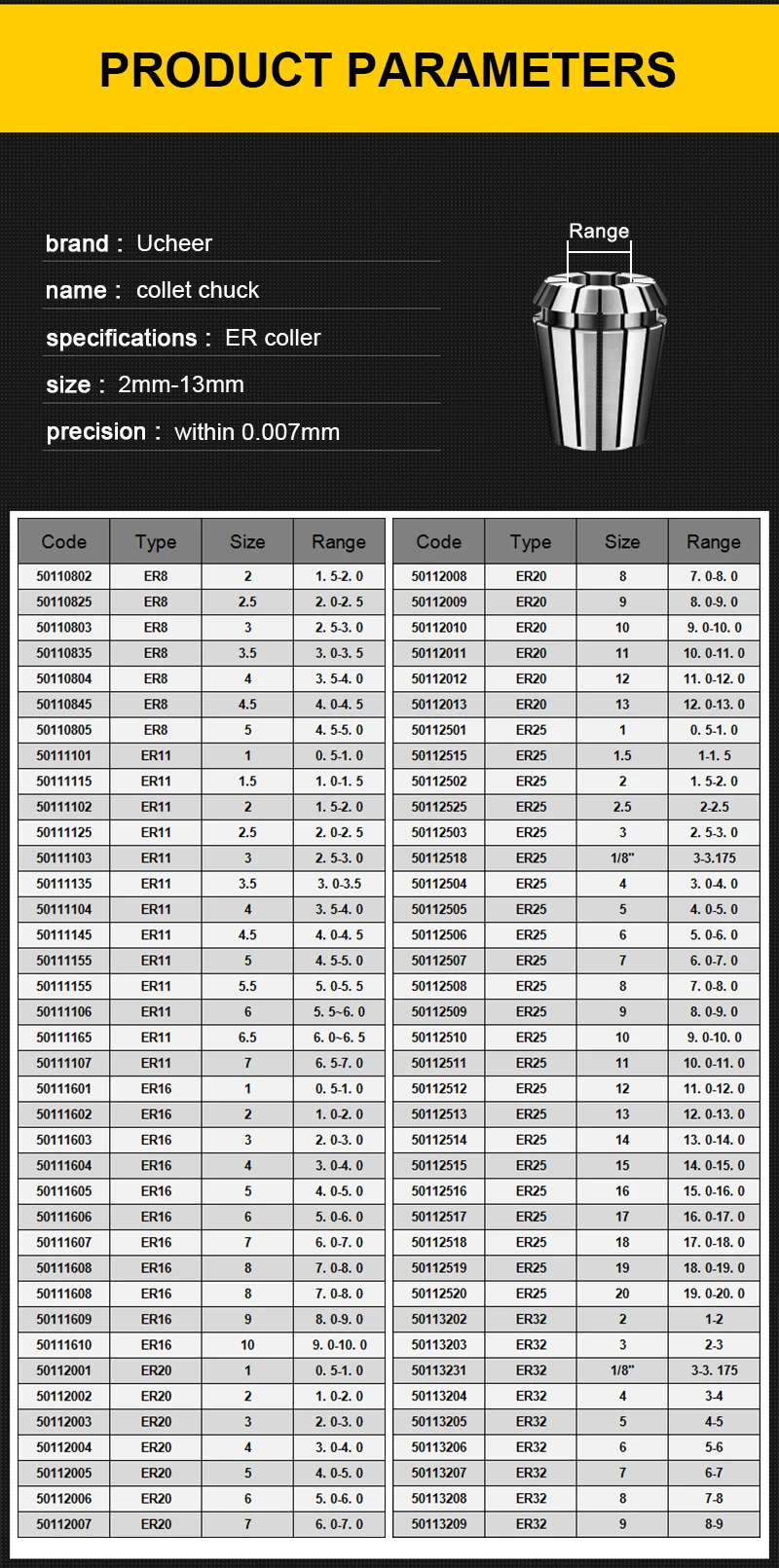 UCHEER 1 шт. Высокая точность ER16 ER20 цанговый патрон для фрезерования гравировальный станок повторяющийся Tsui гибкий цанговый станок с ЧПУ