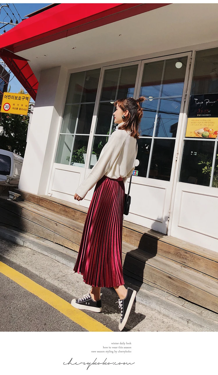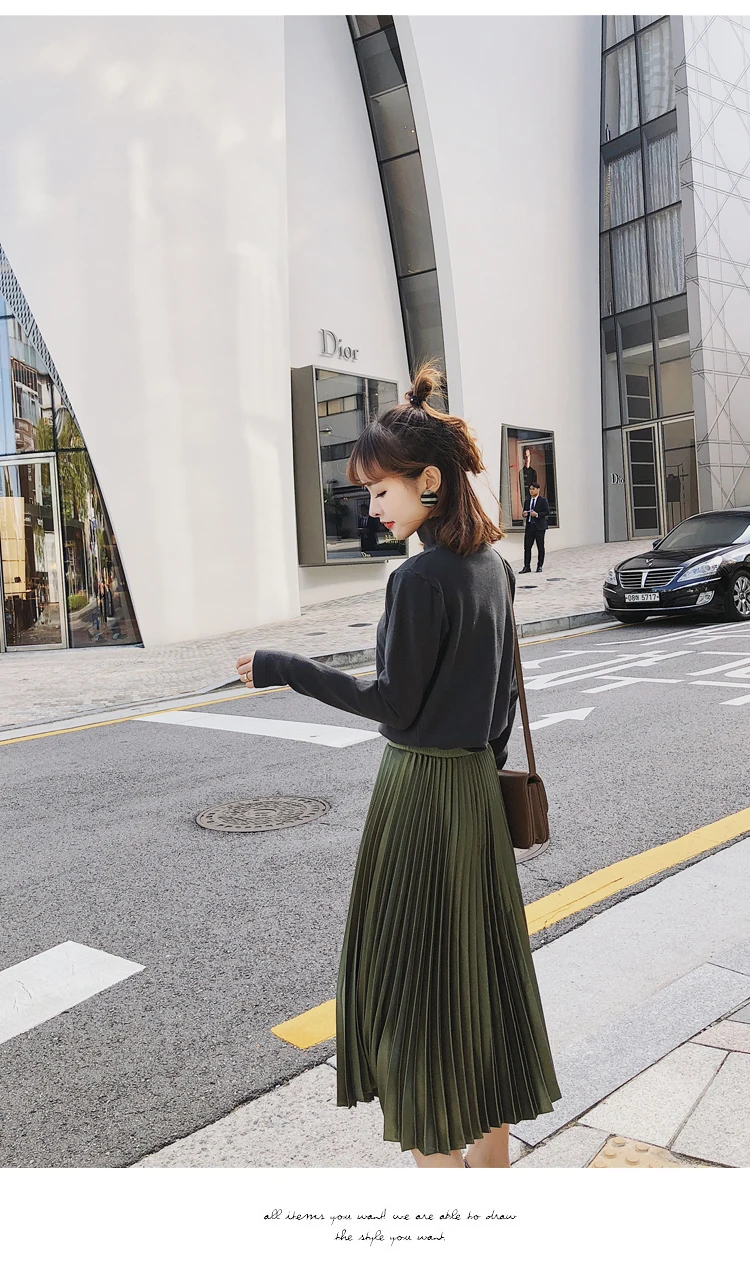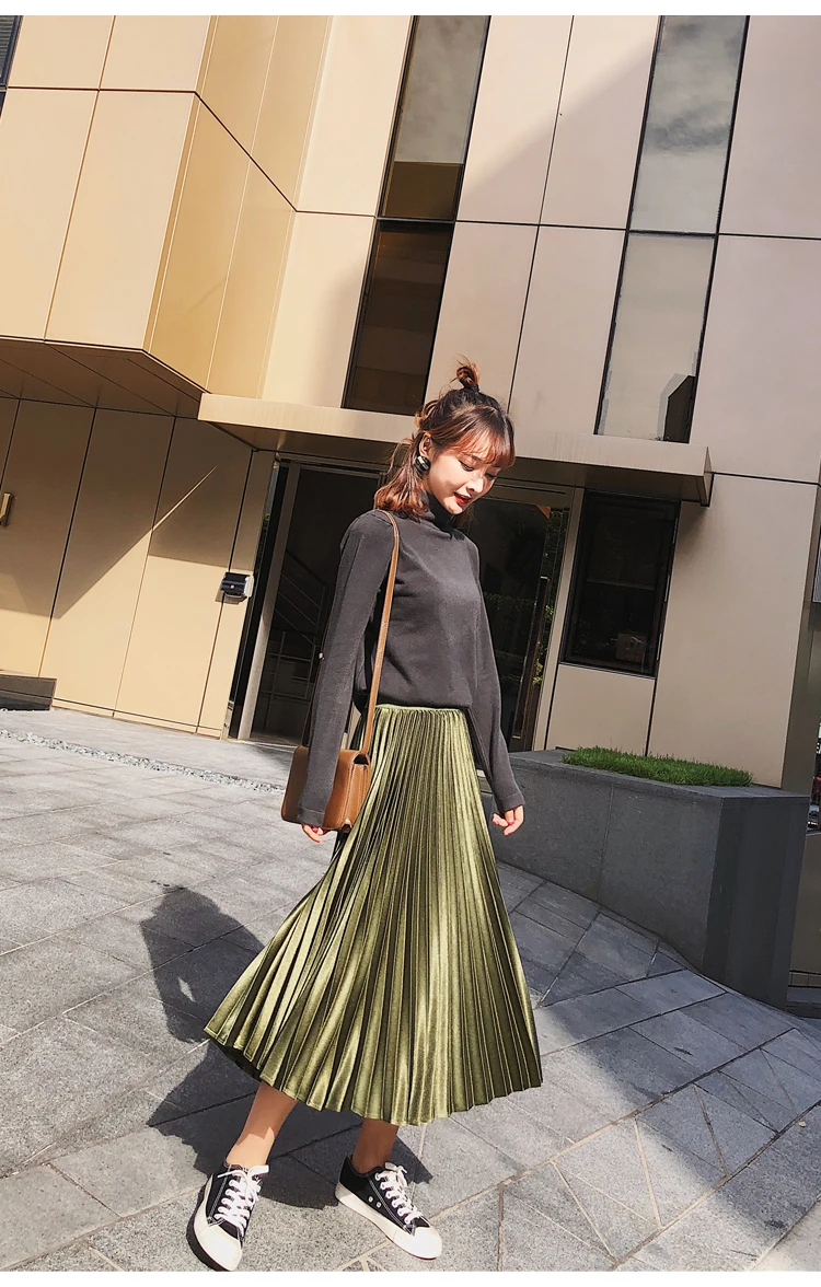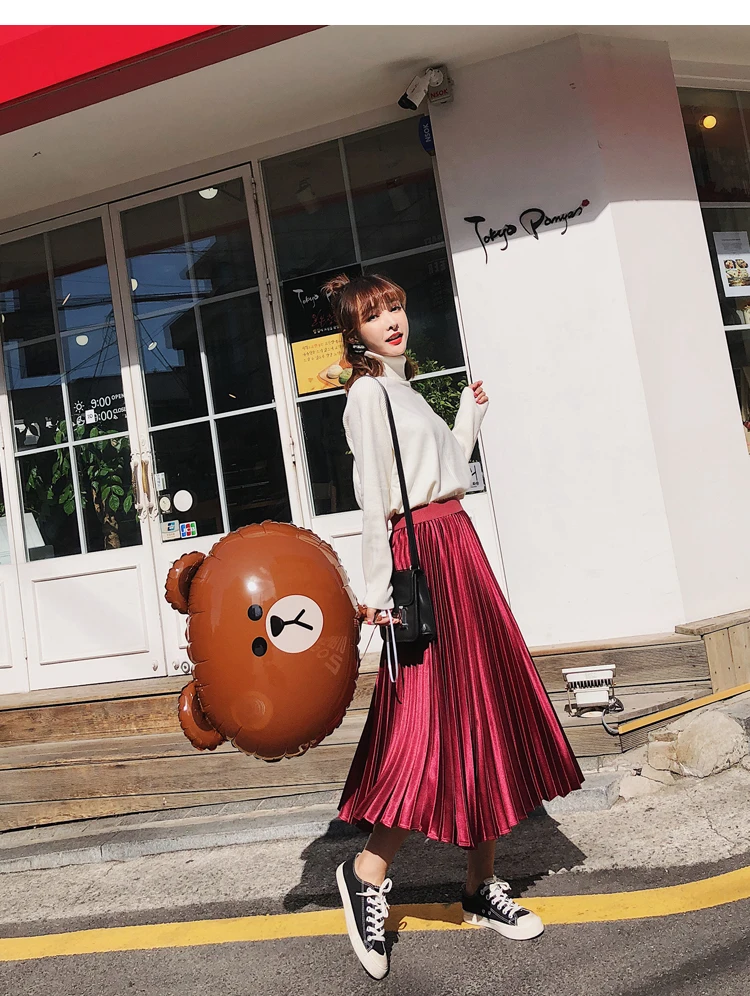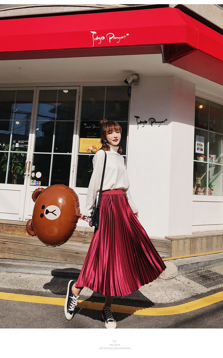 Атласная плиссированная юбка, плиссированная юбка трапециевидной формы с высокой талией и эластичной резинкой на талии, шикарная юбка миди цвета металлик, DC293 <, 2019