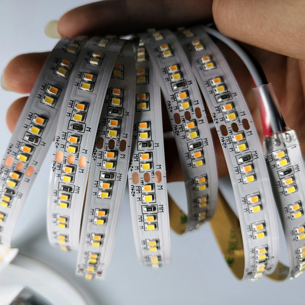 Световые бусины: SMD2216 Светодиодный индикатор s: 240 светодиодов на метр (120 светодиодный, теплый белый, 120 светодиодный, 6500 К, холодный белый) Технические характеристики: 10*5000 мм (рулон 5 метров) Яркость: 7-10LM Чип: Epistar, медный кронштейн из чистого золота Прямое означает: Ra > 90 Цветовая температура: теплый белый, 2700 к/6500 К, холодный белый Мощность: 19,2 Вт/м Комплектация: катушка + Электростатическая упаковка для пакетов (3 м, пластик), 5 м/рулон Напряжение: 12 В/24 В постоянного тока Материал цепи: 2 унции FPCB Печатная плата: высококачественный лист FPCB 2 унции с низким давлением и хорошей теплоотдачей Цвет печатной платы: белый Установка: клейкая лента, клей 3 м