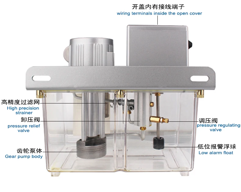 1. Подача масла и прерывистое время регулируются контроллером ПК.2. С выходом масла 200 ~ 300CC/min Емкость масляного бака имеет 2, 3 и 4 литра и т. Д.На масляном баке есть датчик уровня масла и автоматическое устройство управления маслом.Красный светильник горит, когда количество масла недостаточно, что напоминает вам заполнить его.3. В масляном насосе есть два клапана, клапан регулирования давления и разгрузочный клапан. (см. Рис. 1-3)4. Металлический масляный бак может быть настроен.(Конкретный план смазки может быть настроен)