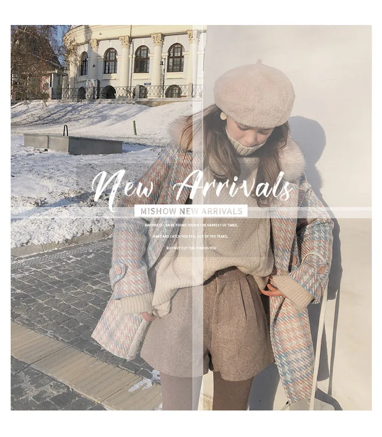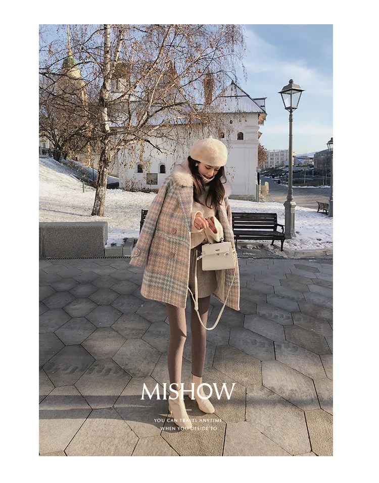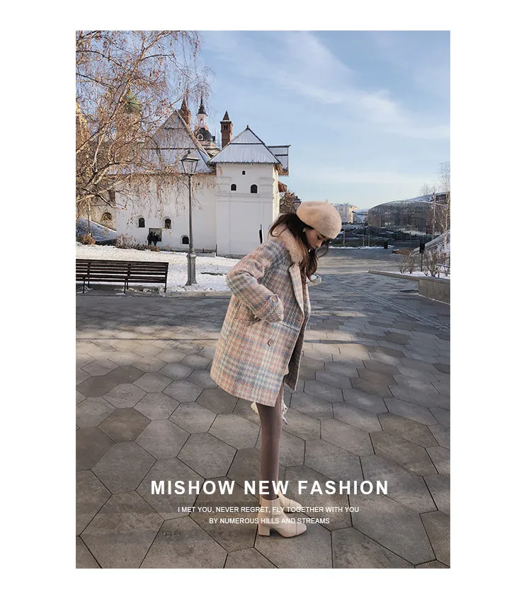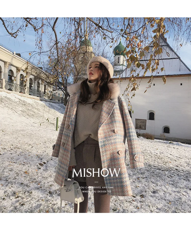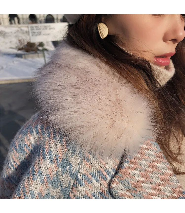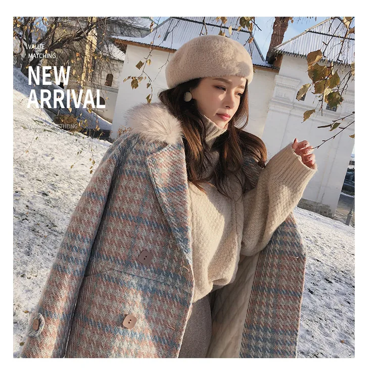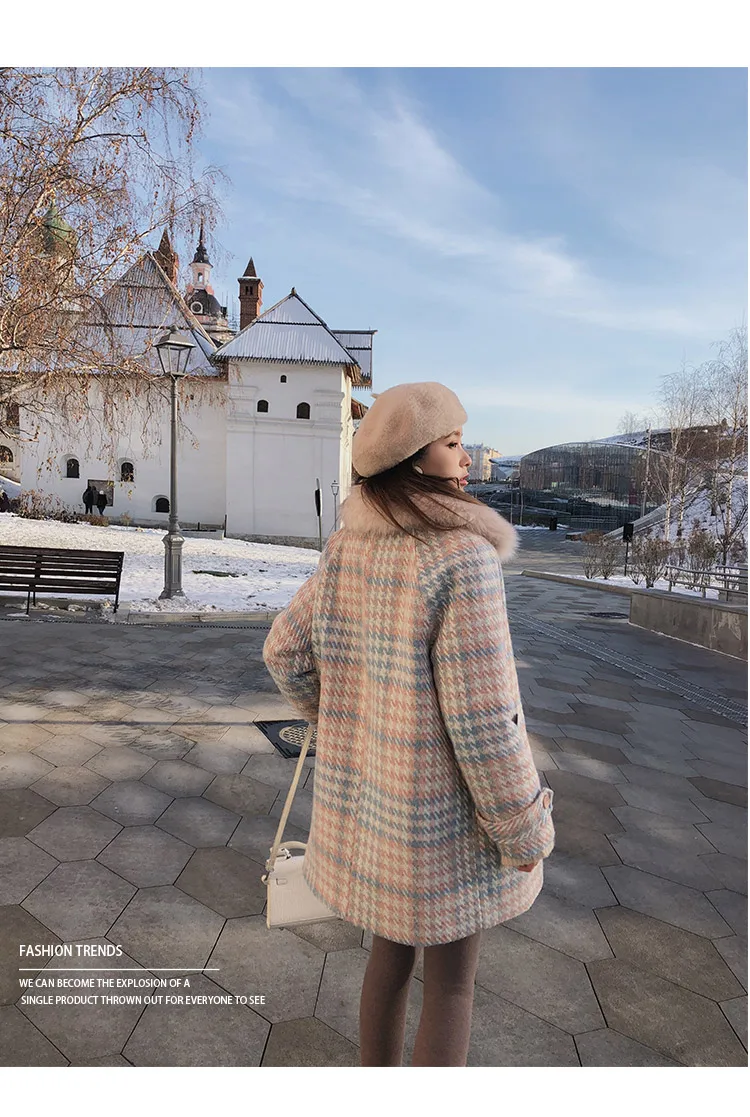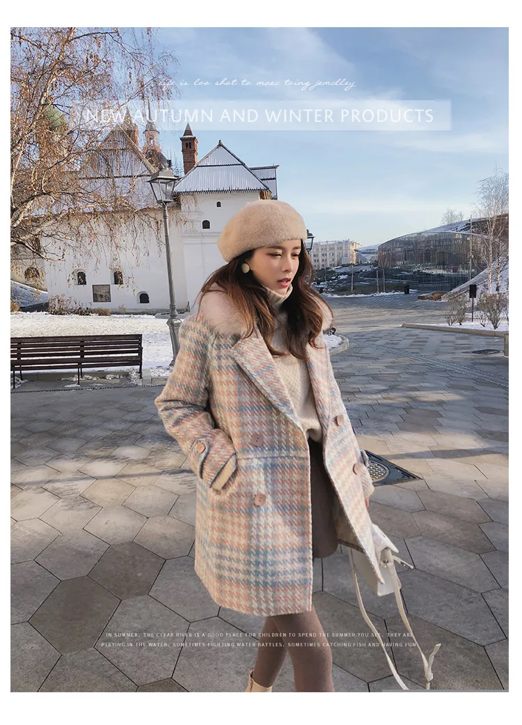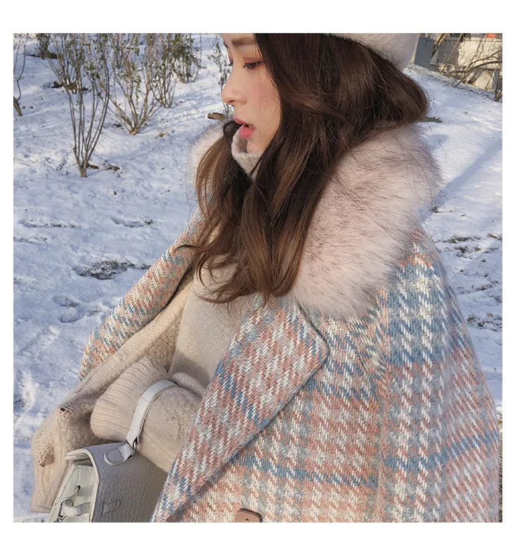 Женское шерстяное пальто с узором гусиная лапка длинное толстое теплое большого