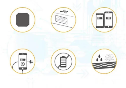 Применение Область применения:Цифровые устройства, такие как мобильные телефоны, внешний аккумулятор, gps-навигатор, камера, bluetooth-динамик, поддерживающий зарядное устройство 5 В. На основе различных лучей солнечного света, зарядный ток и время зарядки будут отличаться.