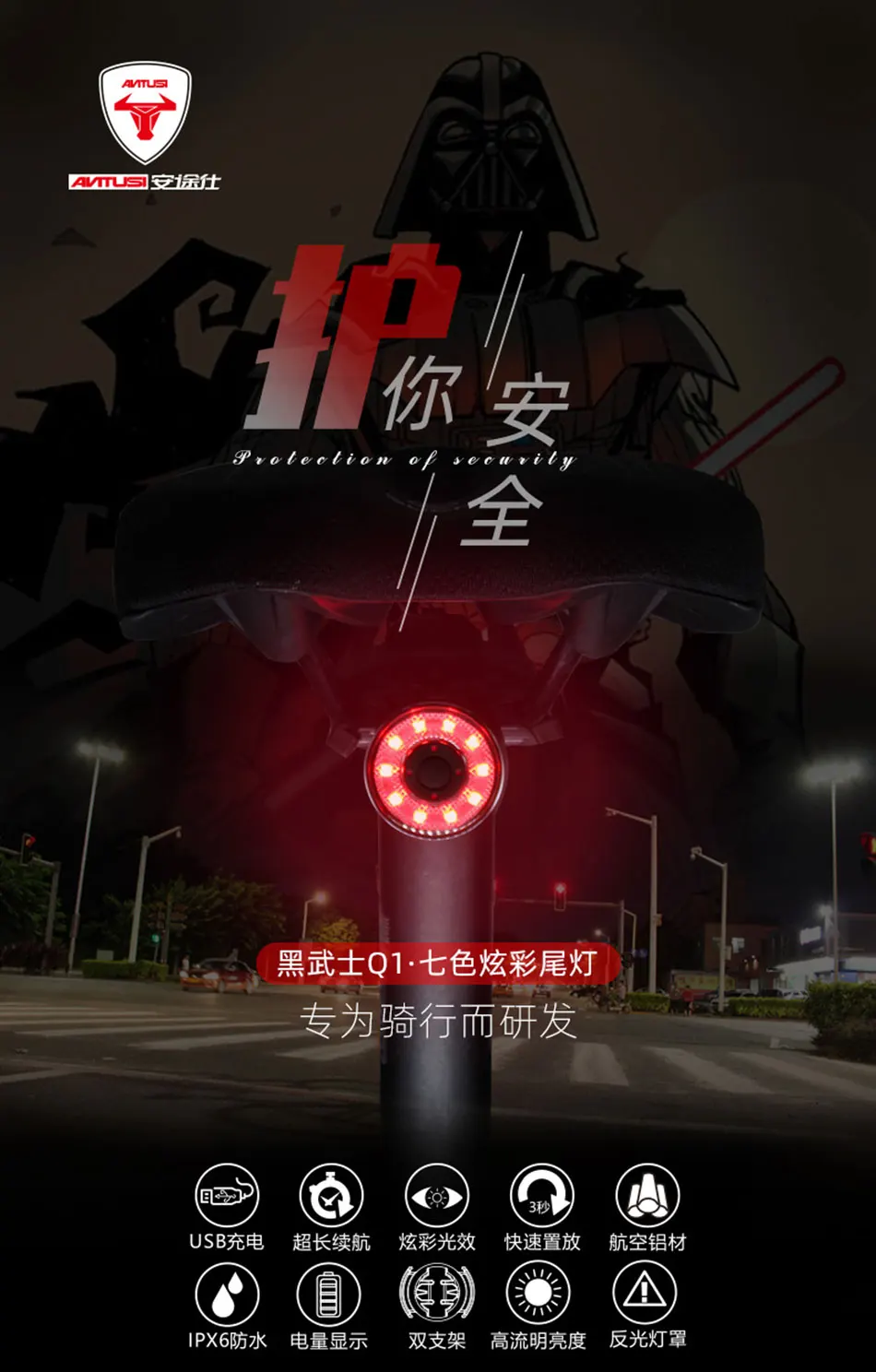 Фонарь задний велосипедный Wasafire 5 светодиодный и 2 лазера|Велосипедная фара| |