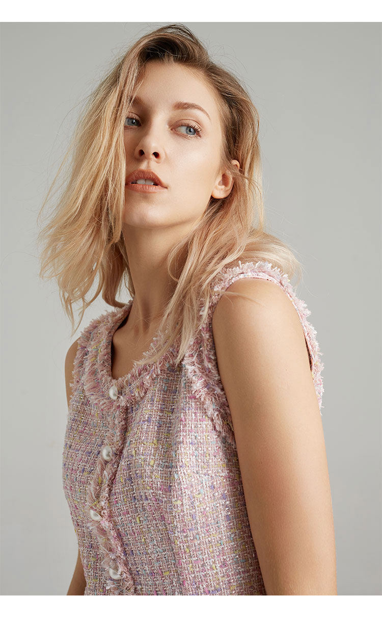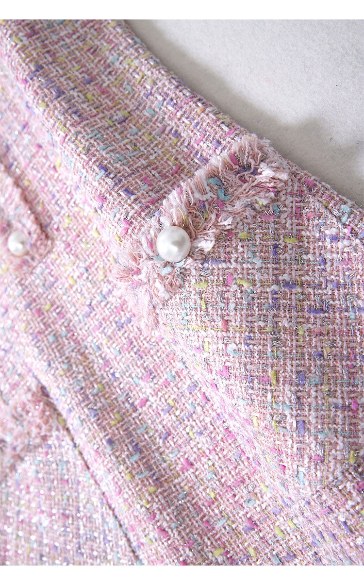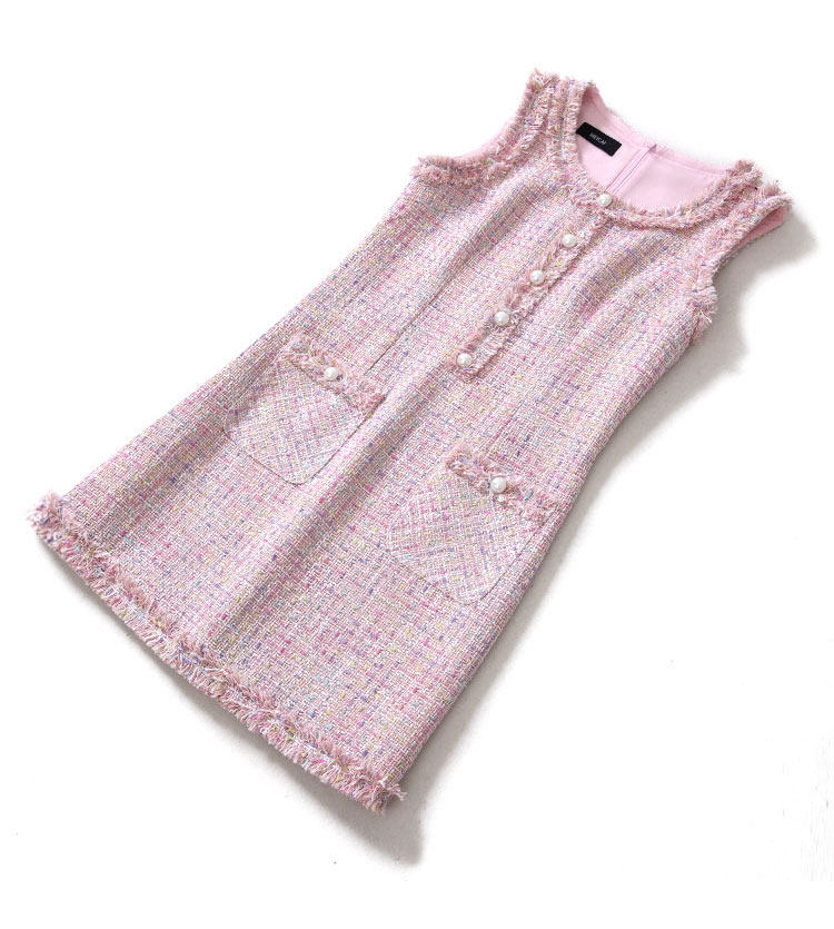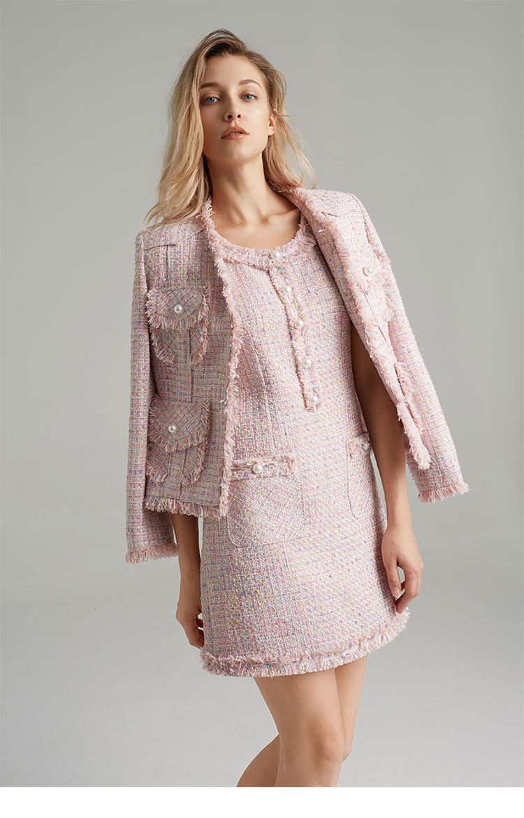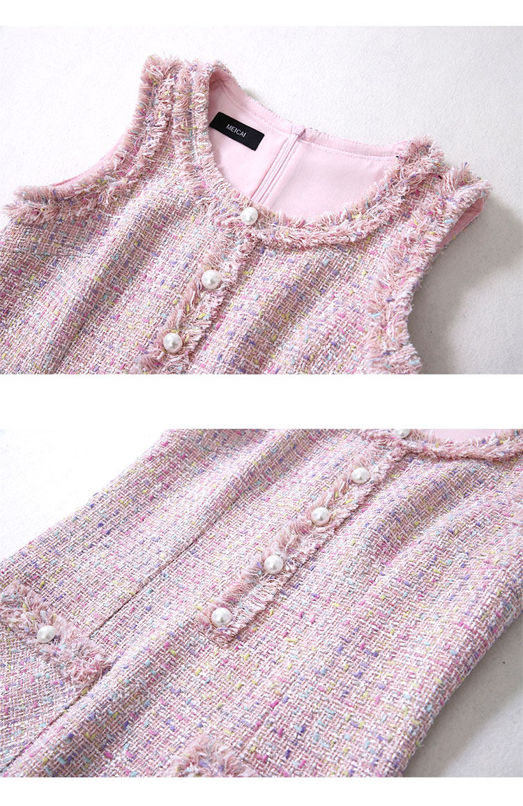Европейский и американский элегантный женский весенний осенний комплект из двух частей платье тонкий жакет без рукавов Мини платье розовый милый костюм