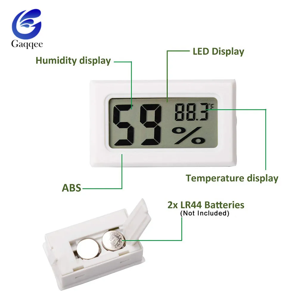 Параметры: Диапазон температур: -50 ° c ~ 70 ° c Диапазон измерения влажности: 10% RH ~ 99% RH Влажность Точность: 5% Разрешение дисплея влажности: 1% RH Точность температуры: 1 °C Операционной Напряжение: 1,5 V или LR44 батареи (не входит в комплект) Период выборки: 10S Размеры: прибл. 48x28,5x15,2 мм Размер ЖК-дисплея: прибл. 40x22,5 мм Размеры установки: прибл. 46x27x13,5 мм Цвет: черный/белый Этот гигрометр имеет зонд, который может точно проверить влажность в некоторых местах. Она была широко использована Посылка включает в себя: 1 х цифровой термометр гигрометр