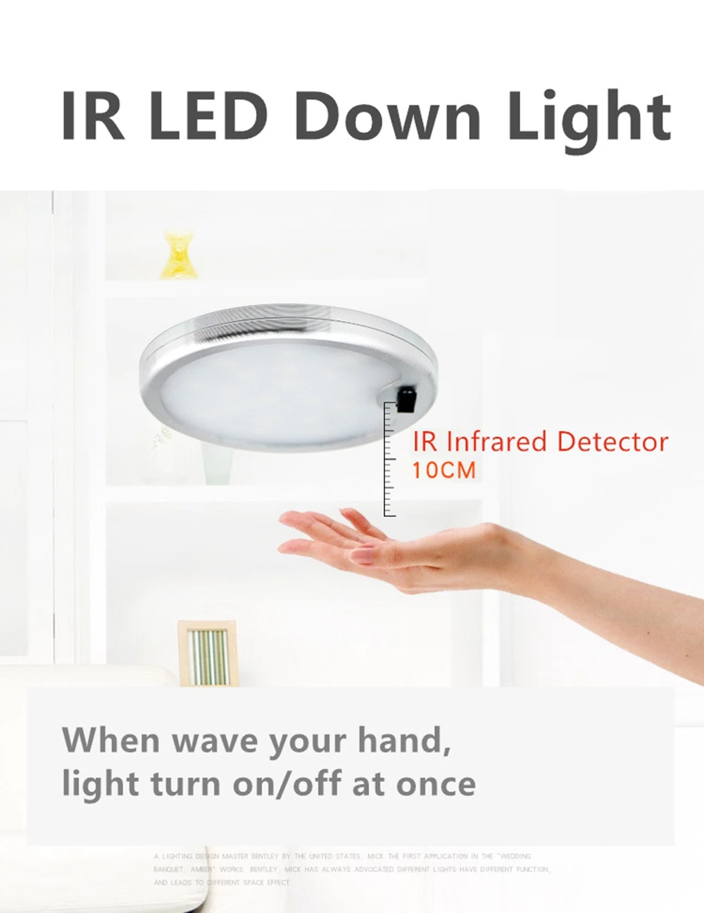 Это освещение шкафа включается/выключается с простой ручной волной. Когда волна руки находится в области датчика, свет включен. Затем, махая рукой, свет выключается.