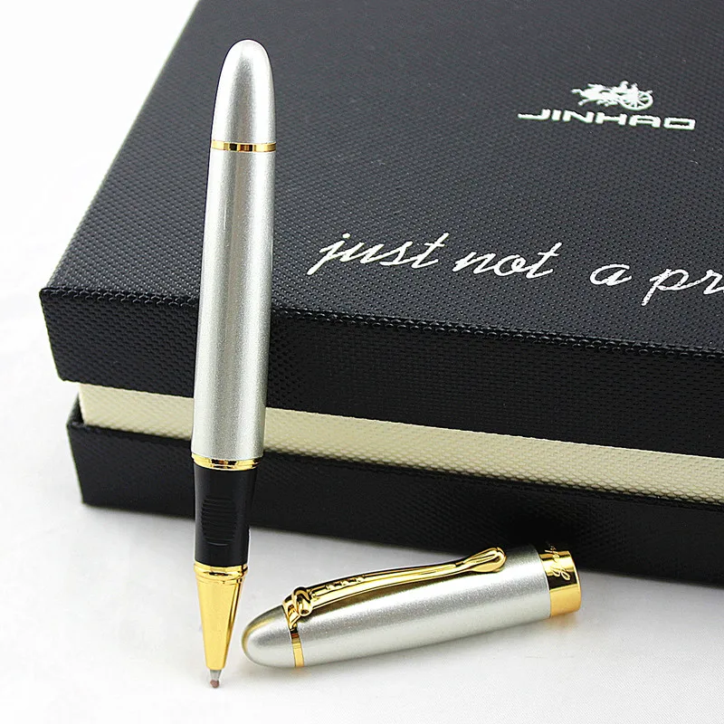 Шариковая ручка с зажимом Jinhao черная и серебристая шариковая черным стержнем