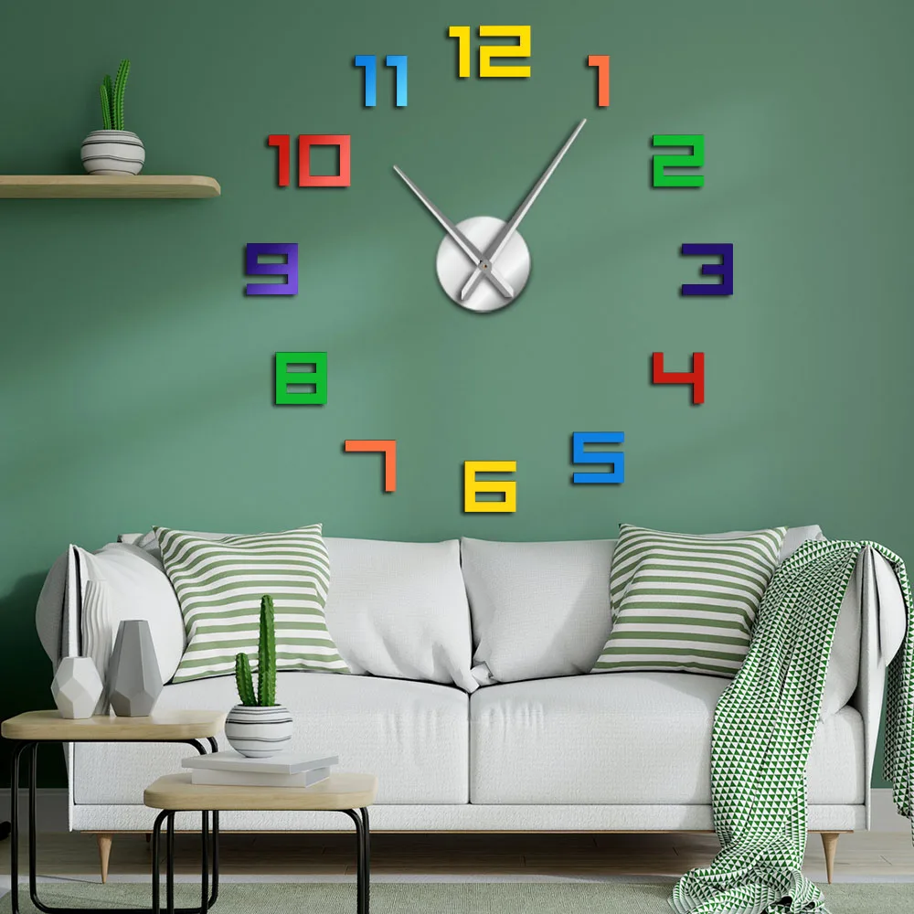 Материал часов: акрил с эффектом Miirror Материал наклейки: EVA пена (этиленвинилацетат) Питание от 1 аккумулятора АА (не входит в комплект) Посылка включает в себя: 12 шт. зеркальных акриловых номеров часов 2 шт стрелки часов Часы-машина Бумажная линейка