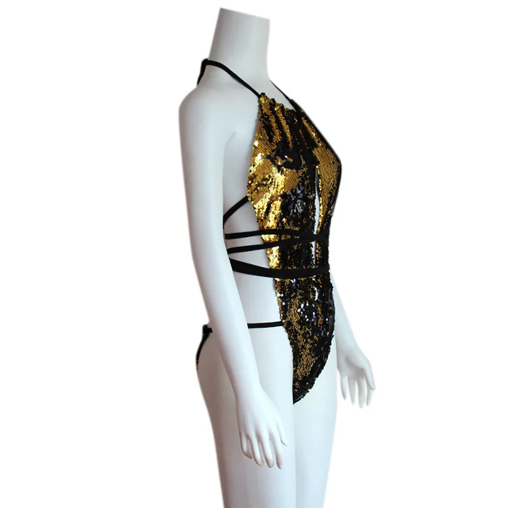 Женский бандажный комбинезон с блестками, пуш-ап, мягкий бюстгальтер, бикини, цельный купальник
