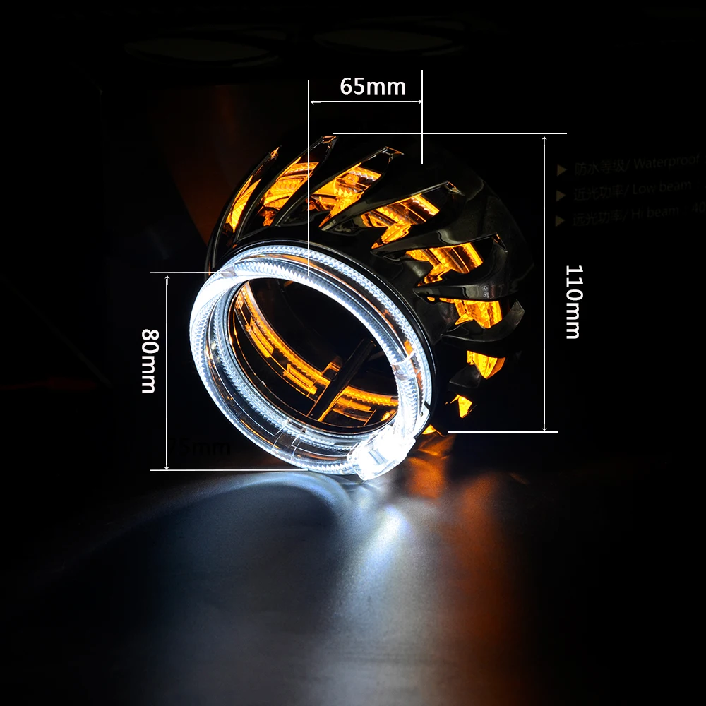 Входная мощность: 12 В транспортных средств Размеры проектора: 2,5" Цвет глаз ангела: белый, красный Варианты Отключения: LHD по умолчанию Левый привод (LHD) -руль слева Подходит: H4, H7 Розетка Требуемые лампы: стандартные H1 (лампы HID настоятельно рекомендуются)