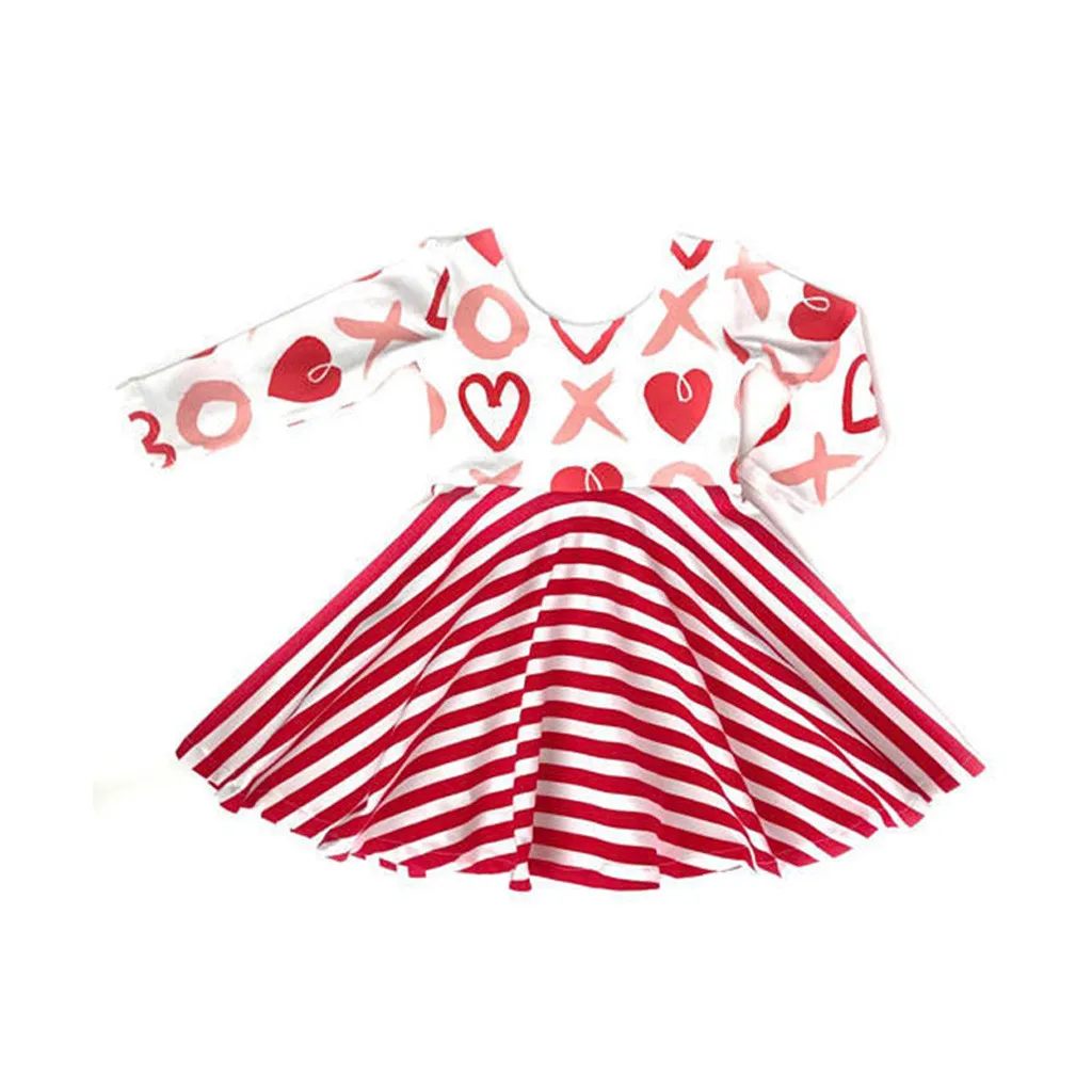 Платье принцессы в полоску с принтом сердечек на День святого Валентина для маленьких девочек