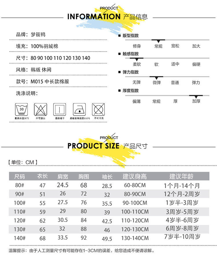 Перед покупкой, пожалуйста, обратите внимание: в следующей таблице указан правильный размер. При покупке, пожалуйста, выберите свой размер. Размер (1 T = 80) длина: 47 см; Обхват груди: 68 см; рукав: 28,5 см;Ширина плеч:/см(2 T = 90) Длина: 51 см; Обхват груди: 72 см;Рукав: 32 см;Ширина плеч:/см(3Т = 100) Длина:55 см; Обхват груди: 76 см;Рукав: 35,5 см;Ширина плеч:/см(4 T = 110) Длина: 59 см; Обхват груди: 80 см;Рукав: 39 см; Ширина плеч:/см(5 T = 120) Длина: 62 см; Обхват груди: 84 см;Рукав: 42,5 см; Ширина плеч:/см(6 T = 130) Длина: 65 см; Обхват груди: 88 см;Рукав: 46 см;Ширина плеч:/см(7 T = 140) Длина: 68 см; Обхват груди: 92 см;Рукав: 49,5 см;Ширина плеч:/см Пожалуйста, учитывайте разницу в 1-3 см из-за ручного измерения, спасибо (все измерения в см и обратите внимание, что 1 см = 0,39 дюйма) Примечание: Пожалуйста, сравните детали размеров с вашими перед покупкой!